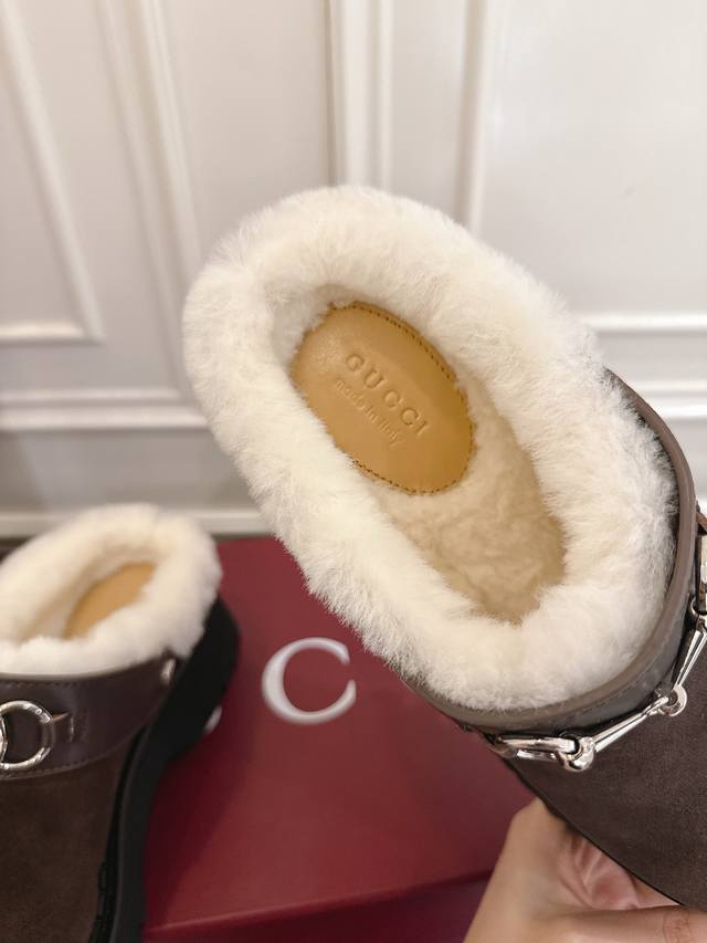 Factory direct price women's shoes sports original single Gucci horsebit wool mules with grooved sole half slippers. As a tribute to the brand's equestrian origins, the horsebit, after years of refinement, blends rich historical heritage with modern fashion trends. Cowhide upper, 5cm sole thickness, sizes 35-40.