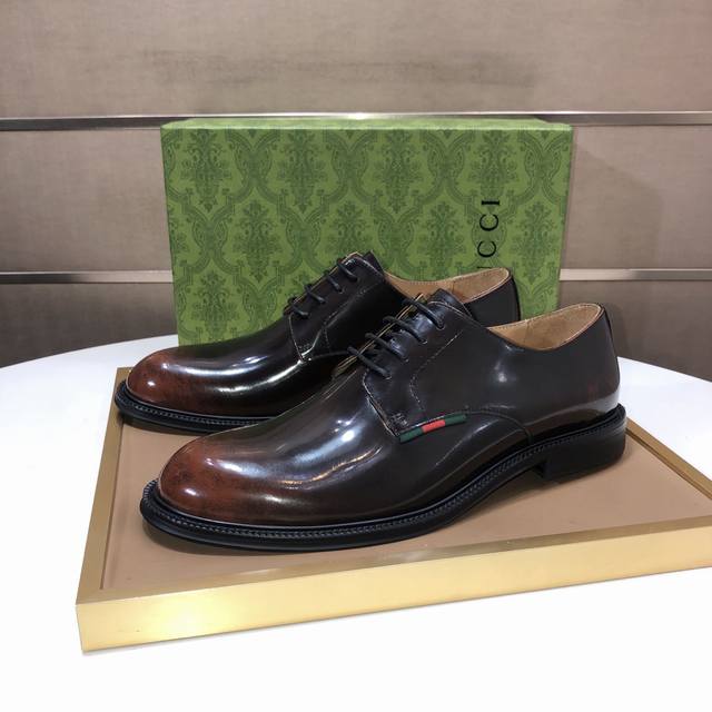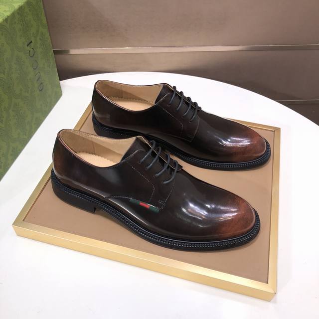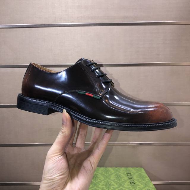 Factory direct wholesale of Gucci, Italy's top luxury men's shoe giant. New arrivals featuring full-grain leather lining. Authentic European style, pleasing to the eye. To ensure durability and prevent deformation, traditional methods are followed, yet innovation is still present. Original sheepskin is used, smooth, natural, and exceptionally glossy. Made with imported cowhide, the first choice for the wealthy. Sizes 38-45. 45 custom sizes available.