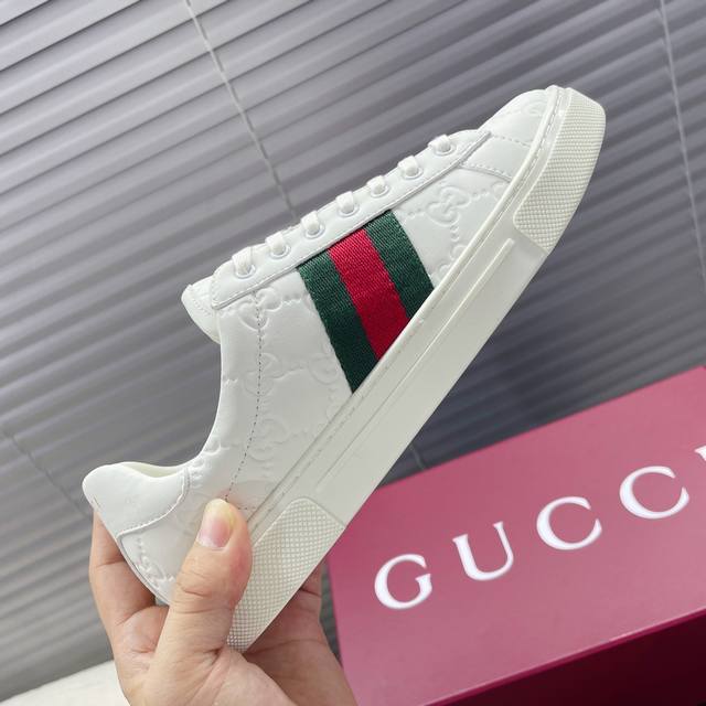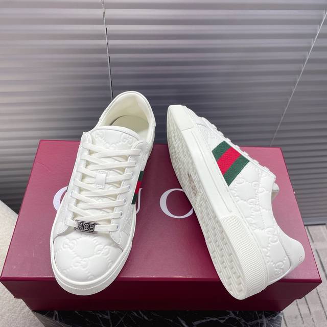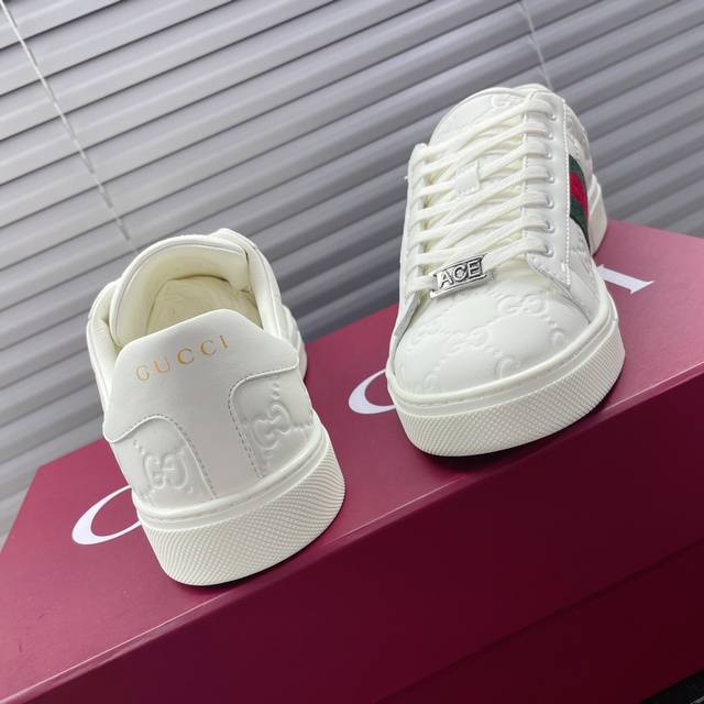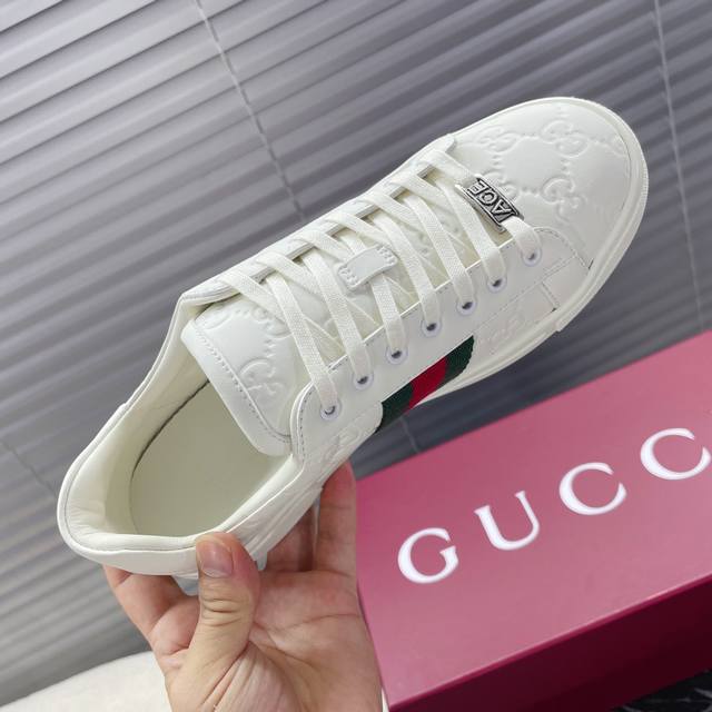Factory direct women's shoes and athletic shoes original single item. Gucc* latest Ace series lace-up athletic shoes. Since its inception, the Ace series athletic shoes have continued the brand's narrative, with craftsmanship creating its signature items. The new series features a distinctive low-top design, paired with unique details, reinterpreting the athletic shoe silhouette. The lace-up is adorned with an "Ace" metal tag, and the thickened construction exquisitely shapes the shoe. Gucc*'s classic red and green striped laces add even more charm to the design. Green leather details, "Ace" metal tag, rubber sole, lace-up, low heel (3cm). This product follows the quality standards of the Gucc* Ace series, using a new soft leather construction, which may wrinkle on the surface. Sizes: Women's 35-40, Men's 50-44, Women's 41, Men's 45. Custom orders are possible, but returns and exchanges are not accepted.
