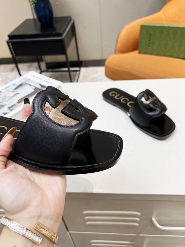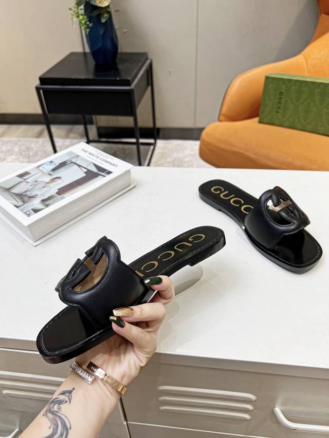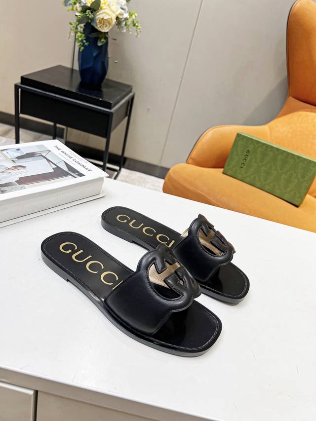 Factory direct women's shoes and sportswear, original Gucci latest hot-selling style, now available! Meticulously crafted using original molds from boutiques, these are luxury items favored by celebrities. Extremely comfortable flat sandals. Outer material: calfskin; lining: sheepskin. Available in 10 classic colors including black, red, white, apricot, green, pink, tan, royal blue, gold, and silver. Midsole and outsole use imported non-slip and wear-resistant rubber. Sizes 35-43. Sizes 44-45 made to order.