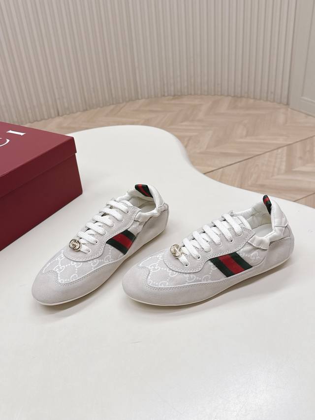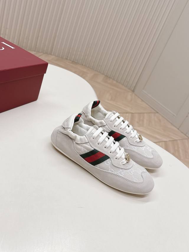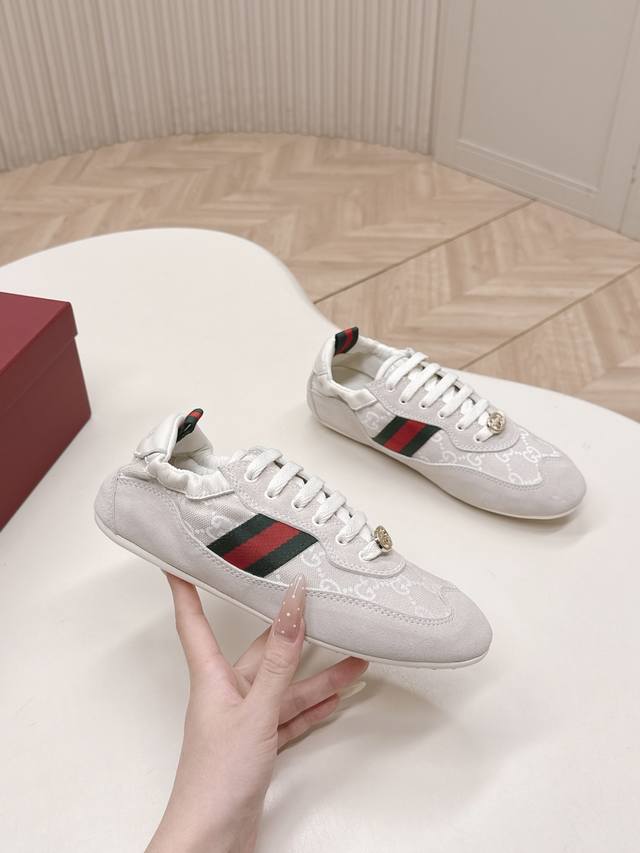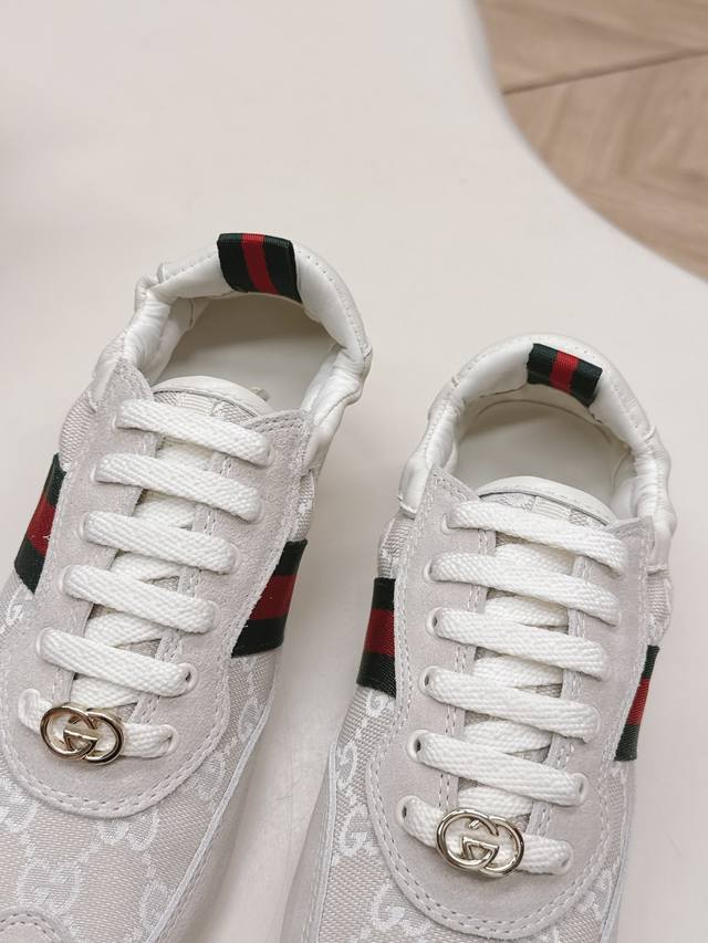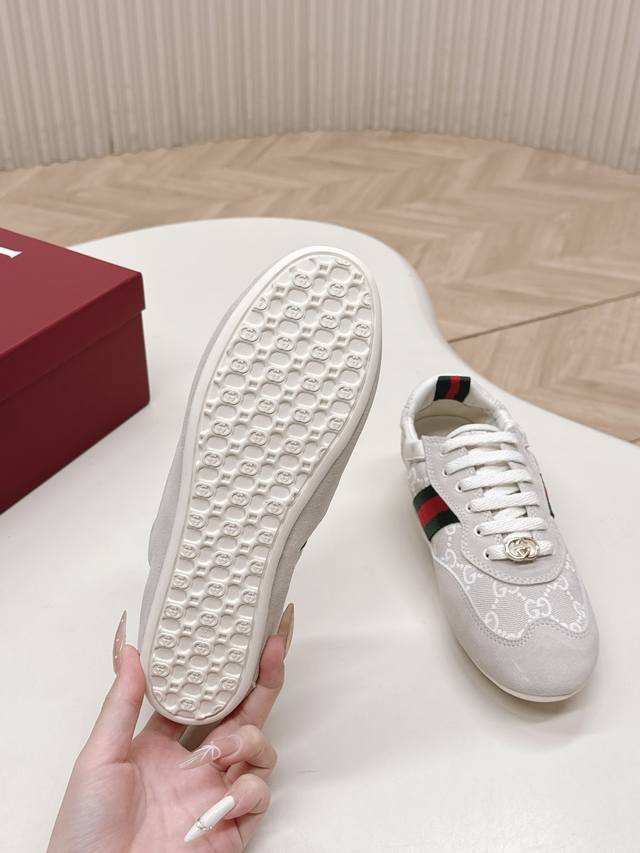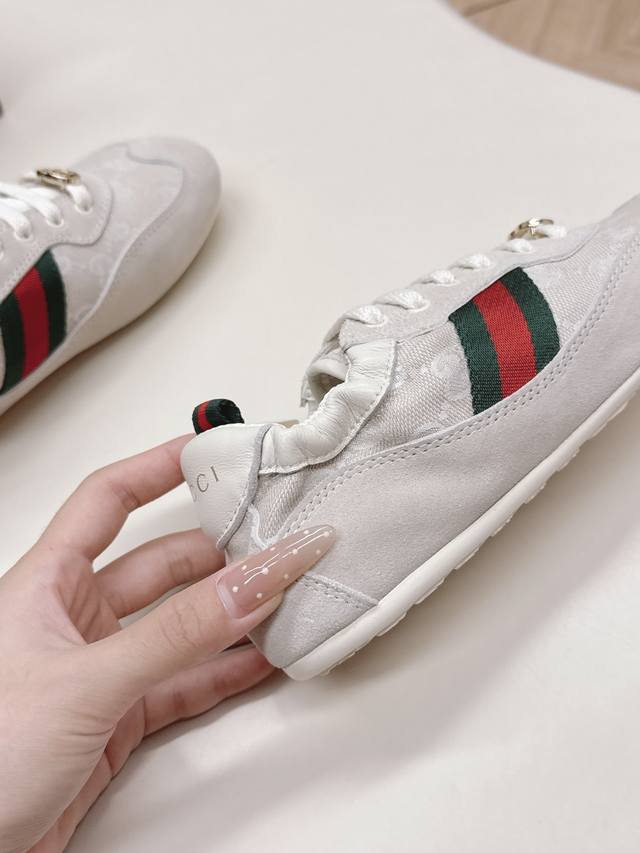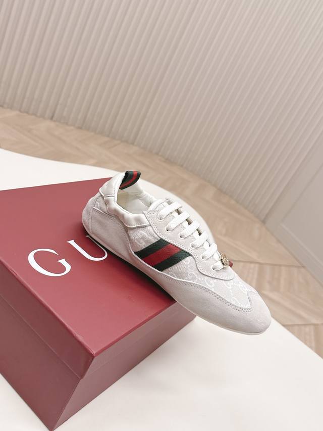 Factory direct women's shoes, sports shoes, original Gucci Shift new retro German training shoes, classic red and green webbing that instantly catches the eye, with a strong sense of layering, ultra-lightweight thin sole : the super popular thin-soled shoe trend, feels grounded on the foot, walking feels like walking on clouds. Mesh + suede splicing material, breathable and textured, won't make your feet stuffy or tired even after walking all day. Stylish and comfortable at the same time, sizes 35-40.