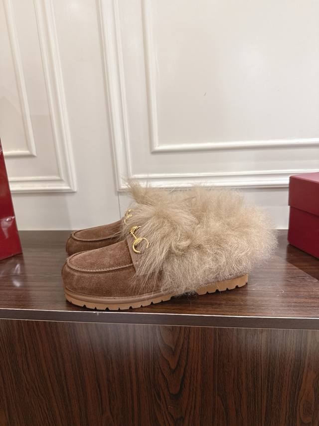 Factory direct women's shoes, sportswear, original Gucci horsebit wool loafers. A brand new collection featuring horsebit accessories, showcasing the brand's equestrian heritage. These loafers are made from high-quality cowhide and Tuscan wool, with a textured sole. Sizes 35-40.