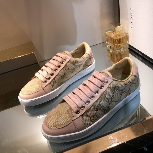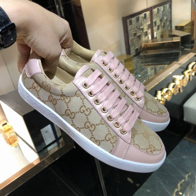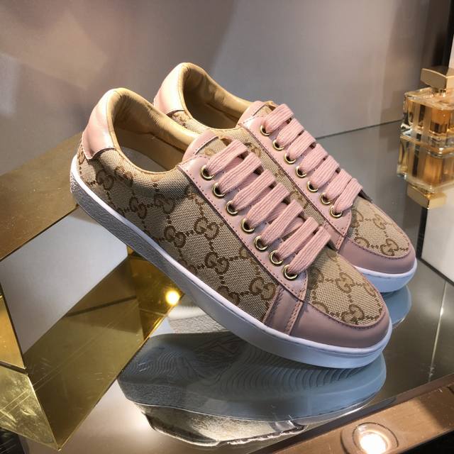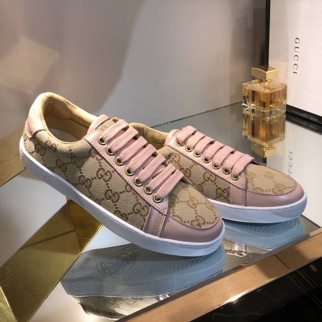 Factory direct women's sports shoes, original and upgraded Gucci classic style, top global brand, 1:1 mold from boutiques. Upper features Gucci's special checkered material + top-grain cowhide, inner lining of top-grain sheepskin, non-slip and wear-resistant rubber sole, sole stitching will never come unglued. Classic and exquisite design brings a luxurious feel, simple design full of sporty spirit and minimalist style. Fashionable and casual style, multiple colors available: Sizes: Women's 34-41, Men's 38-45.