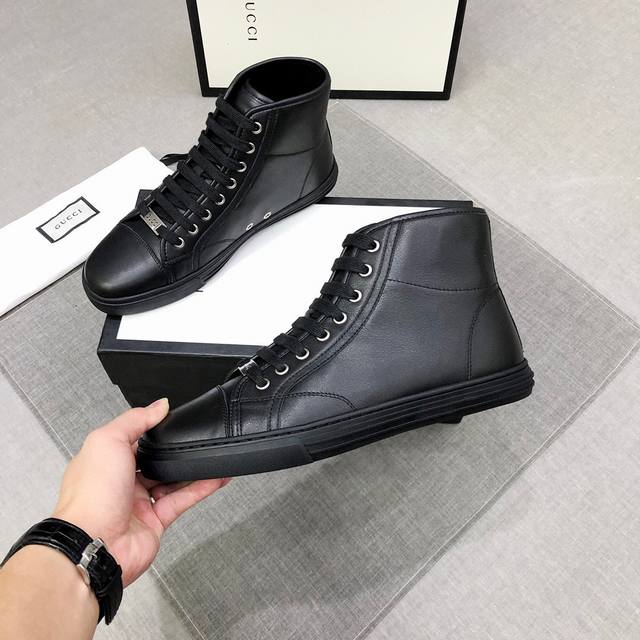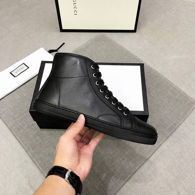 Factory price adjustment Gucci high-top men's trendy shoes official website, latest masterpiece from a high-end brand: The upper is made of imported waterproof cloth and cowhide, fashionable and trendy, comfortable and breathable. The original cowhide lining and rubber outsole are 1:1 replicas of the official quality! Create a stylish and unique look to highlight your individuality! A must-have for trendy men, sizes 38-44, item number 0133 DDD