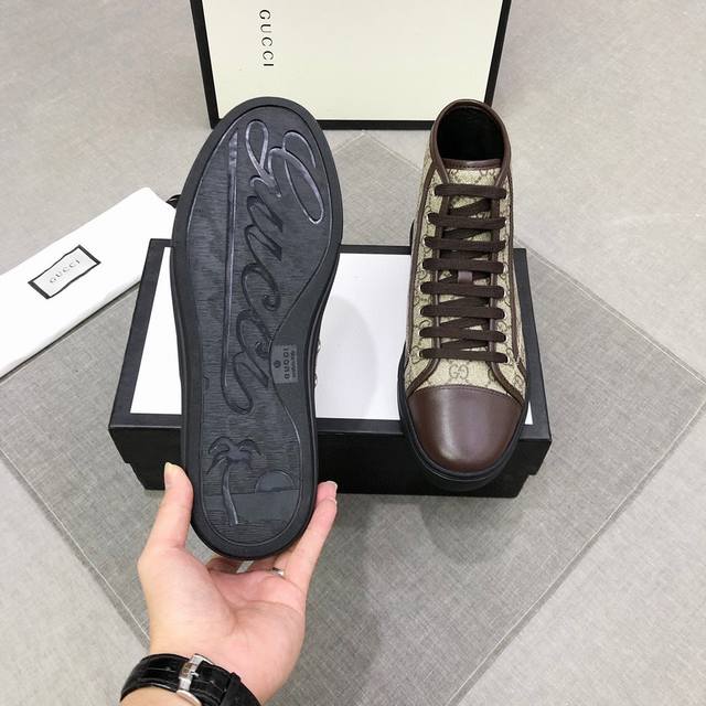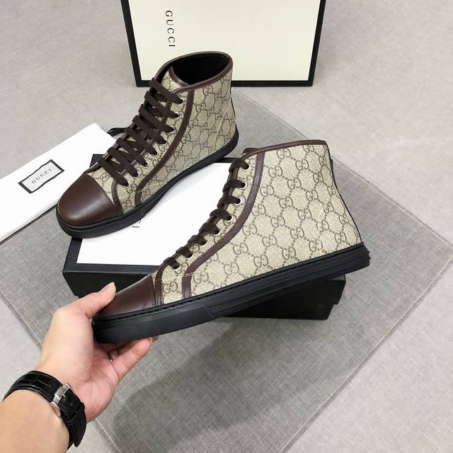 Factory price adjustment Gucci high-top men's trendy shoes official website, the latest masterpiece from a high-end brand: the upper is made of imported cowhide, fashionable and trendy, comfortable and breathable, original cowhide lining and rubber outsole. The quality is 1:1 compared with the official version, a true replica! Create a stylish and unique look to highlight your individuality! A must-have for trendy men, sizes 38-44, code 0133 DDD