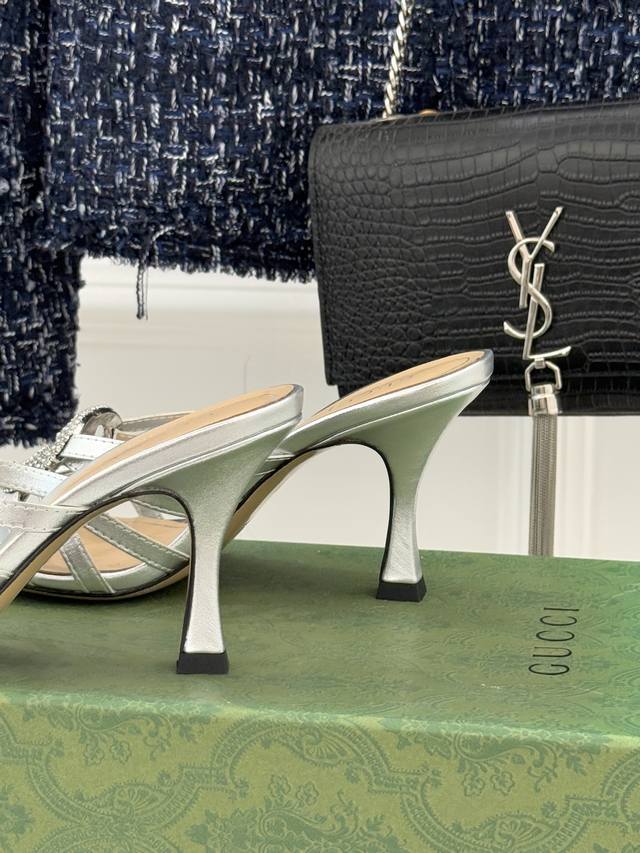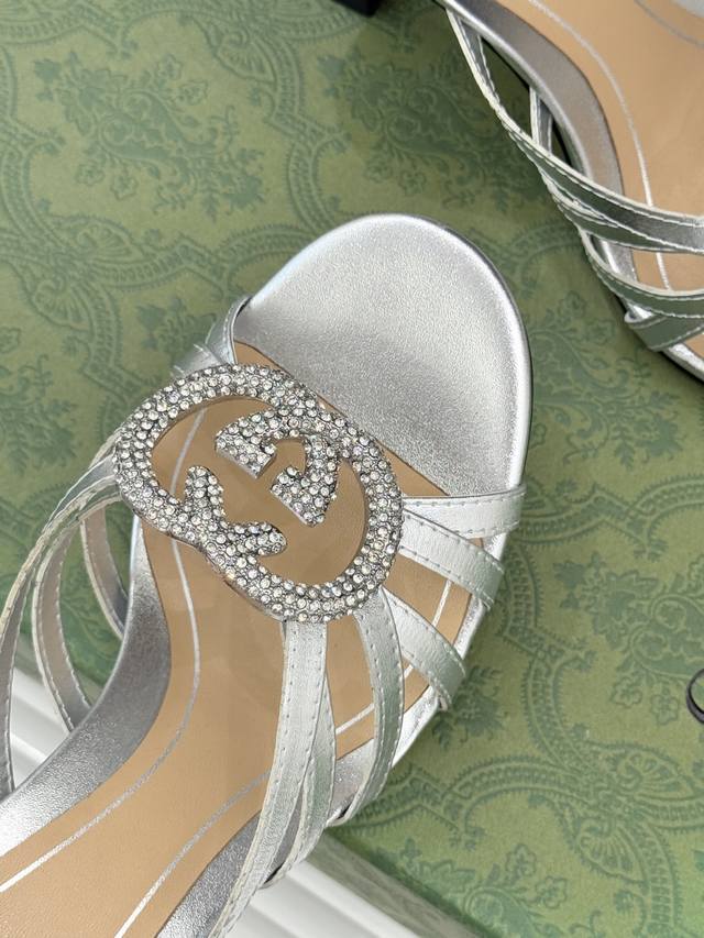 Factory Price DDD Gucci 25Wf Early Spring Rhinestone Double G Strap High Heeled Slippers DDD Reconstructing the Early Spring Style with Classic Symbols and Dazzling Rhinestones DDD Incorporating Italian "effortless elegance" into every inch of footwear DDD Showcasing luxurious quality and modern tension with every step. The shoe features a three-dimensional metallic double-G logo at its core, fully studded with tiny rhinestones that shimmer and gleam under light. Understated yet highly recognizable, it's a contemporary interpretation of the brand's century-old DNA. The 8.5cm stiletto heel is elegant and elongates the figure, making it suitable for petite individuals. Its versatility makes it suitable for all occasions. Pair it with a silk slip dress for a gentle and luxurious look, perfect for dates or commutes. With high-waisted wide-leg pants and a simple shirt, it exudes a sophisticated and modern style. With a floral tea dress, it's ideal for early spring vacations. Effortlessly adding a finishing touch to any outfit, it's appropriate and outstanding for both day and night. The upper is made of original custom leather, with a sheepskin lining and Italian imported genuine leather outsole. Sizes: 35-39, 40, 41, 42 (custom sizes available).