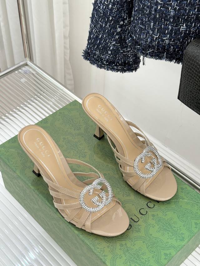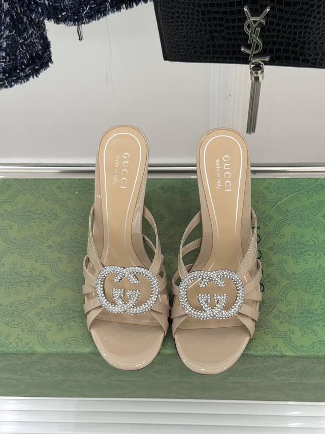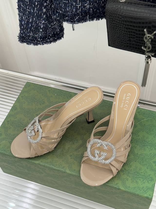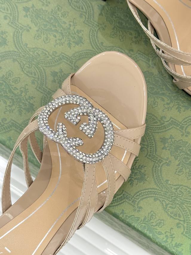 Factory Price Gucci 25Wf Early Spring Rhinestone Double G Strap High Heeled Sli