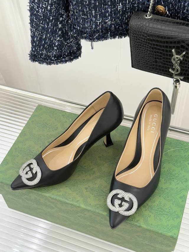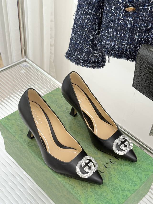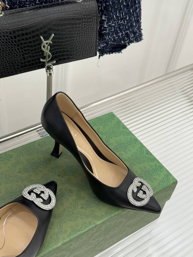 Factory Price DDD Gucci 26Wf Early Spring Rhinestone Pointed Toe High Heels DDD Tracing the Florentine Renaissance Heritage DDD These high heels "return to the roots" DDD Integrating the brand's century-old DNA and elegant aesthetics into the footwear DDD The shimmering rhinestones conceal a sense of quality and sophistication DDD Perfectly interpreting Italian "effortless elegance". DDD The double G logo is particularly eye-catching under the rhinestone inlay DDD Adding a touch of lively brilliance to the shoes DDD Showcasing Gucci's unique brand style DDD Whether paired with a simple dress DDD or a sharp suit DDD It can instantly enhance your sense of fashion and sophistication DDD Make you the center of attention DDD The upper is made of original custom leather DDD The inner lining is made of sheepskin DDD Heel height: 8.5Cm DDD Italian imported genuine leather outsole DDD Size: 35-39 40 41 42 Custom DDDs
