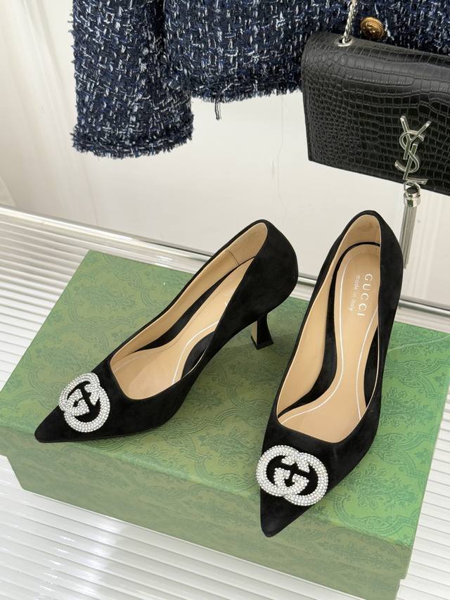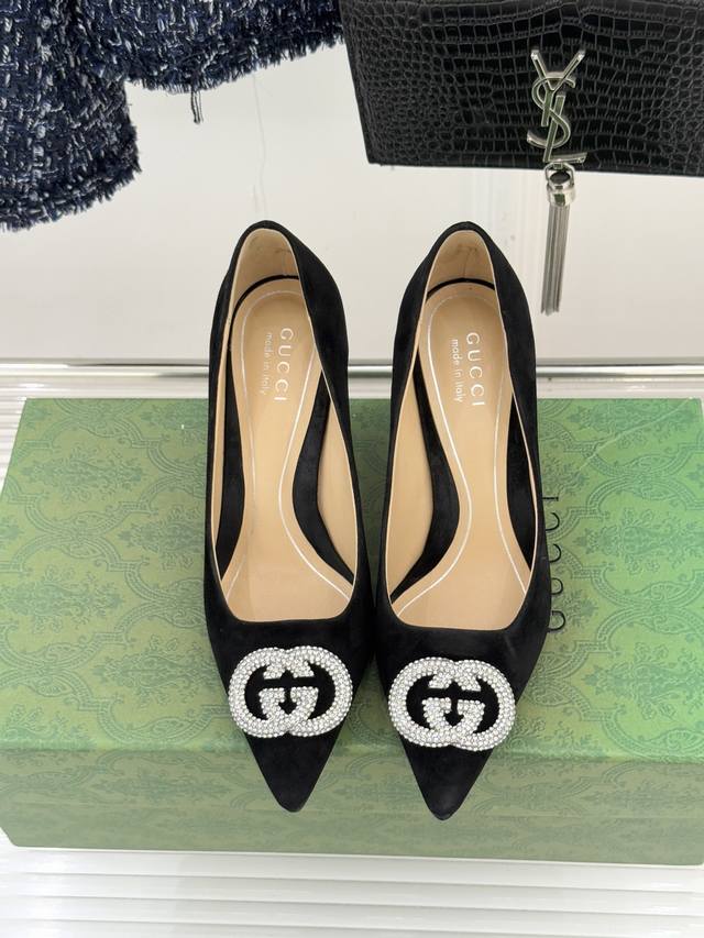 Factory Price DDD Gucci 26Wf Early Spring Rhinestone Pointed Toe High Heels DDD Tracing the Florentine Renaissance Heritage DDD These high heels "return to the roots" DDD Integrating the brand's century-old DNA and elegant aesthetics into the footwear DDD The shimmering rhinestones conceal a sense of quality and sophistication DDD Perfectly interpreting Italian "effortless elegance". DDD The double G logo is particularly eye-catching under the rhinestone inlay DDD Adding a touch of lively brilliance to the shoes DDD Showcasing Gucci's unique brand style DDD Whether paired with a simple dress DDD or a sharp suit DDD It can instantly enhance your sense of fashion and sophistication DDD Make you the center of attention DDD The upper is made of original custom leather DDD The inner lining is made of sheepskin DDD Heel height: 8.5Cm DDD Italian imported genuine leather outsole DDD Size: 35-39 40 41 42 Custom DDDs