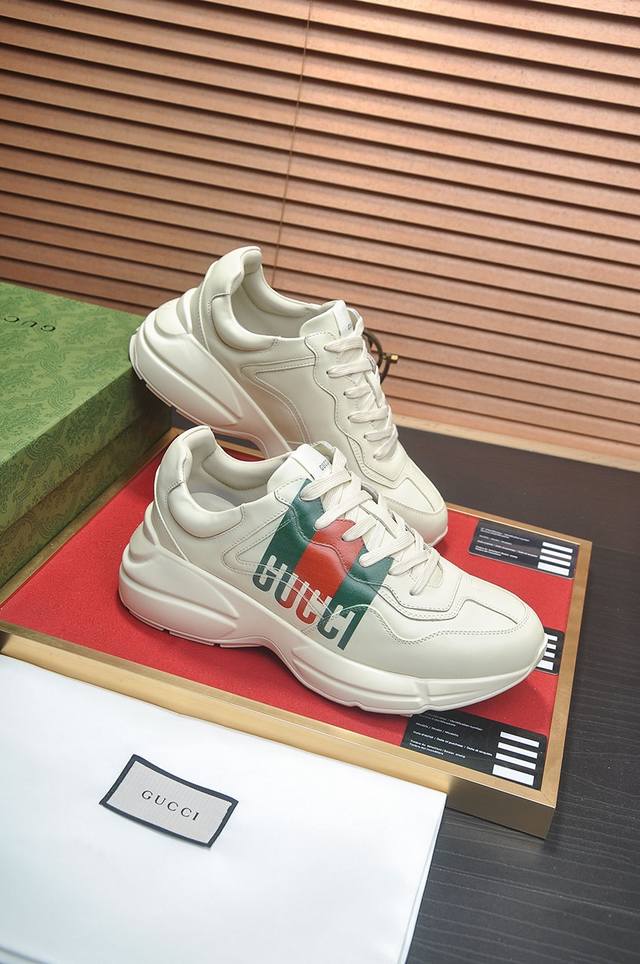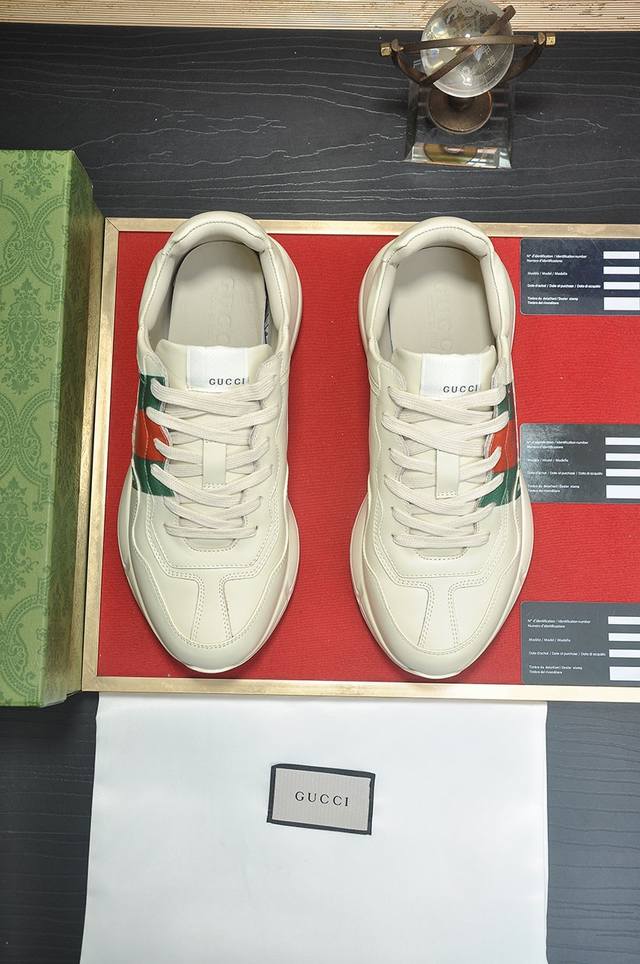 Factory Price. Gucci Couple Style, Top-Quality Version. Selling simultaneously with boutiques. Upper made of imported cowhide, comfortable sheepskin lining, excellent feel. Original lightweight, shock-absorbing, thickened foam outsole. Simple color blocking, versatile and stylish. Sizes: Women's 35-40, Men's 38-45. Size 45 is custom-made and non-refundable. Includes full packaging, card, certificate of conformity, cloth bag, and tote bag.