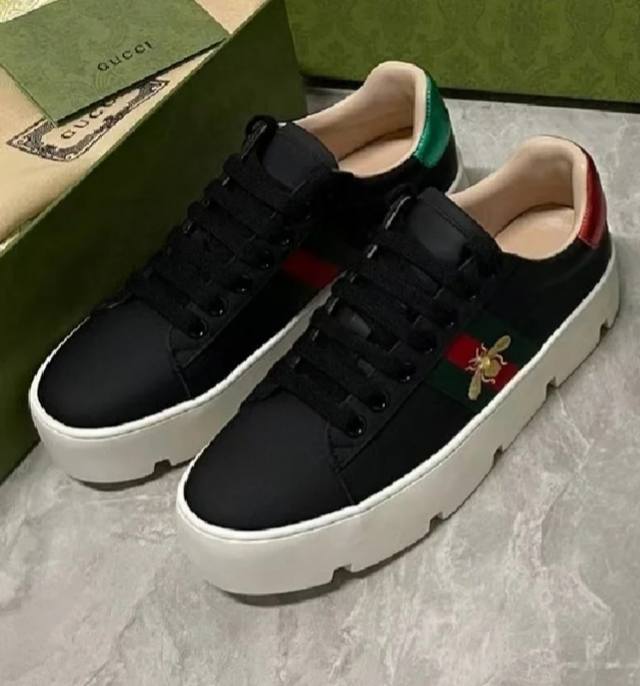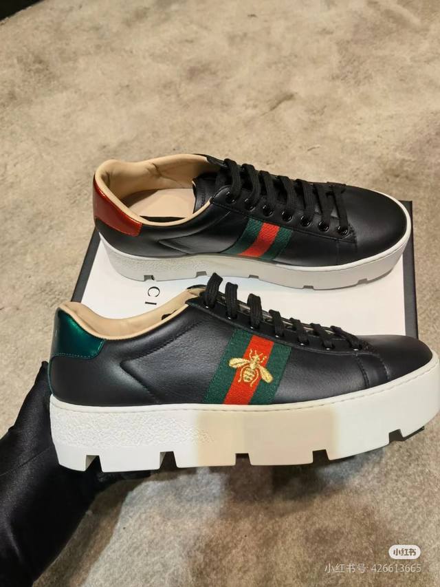 Factory Price: Gucci New Platform White Sneakers. Rubber outsole, upper: leather calfskin/sheepskin lining, sheepskin insole, size 35-45.