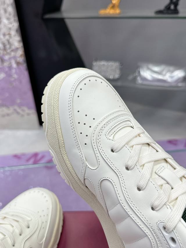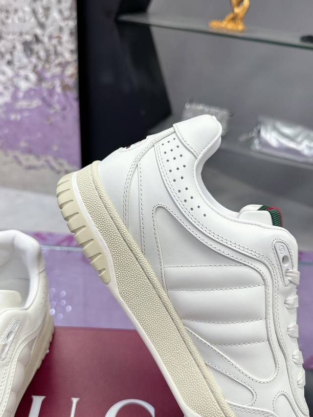 Original purchase, development and production, this high-low top sneaker adopts a basketball style silhouette design, cleverly integrating hollow patchwork and distressed effects, showing a unique craftsmanship. The craftsmanship incorporates brand logo details such as interlocking double G styling accessories and Gucci lettering, a low-key tribute to the brand's design heritage.
