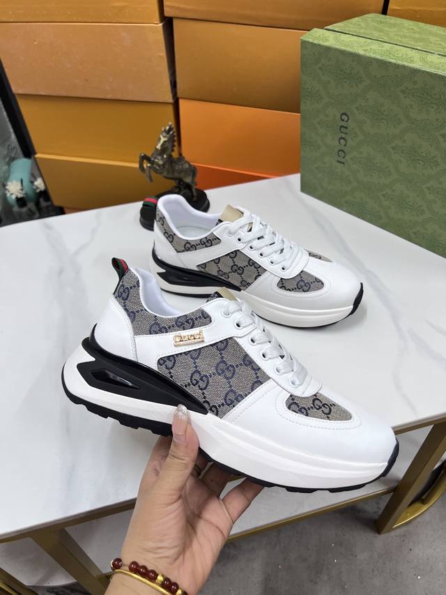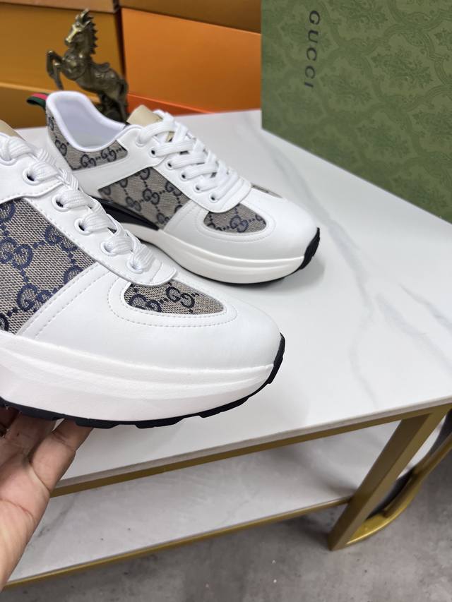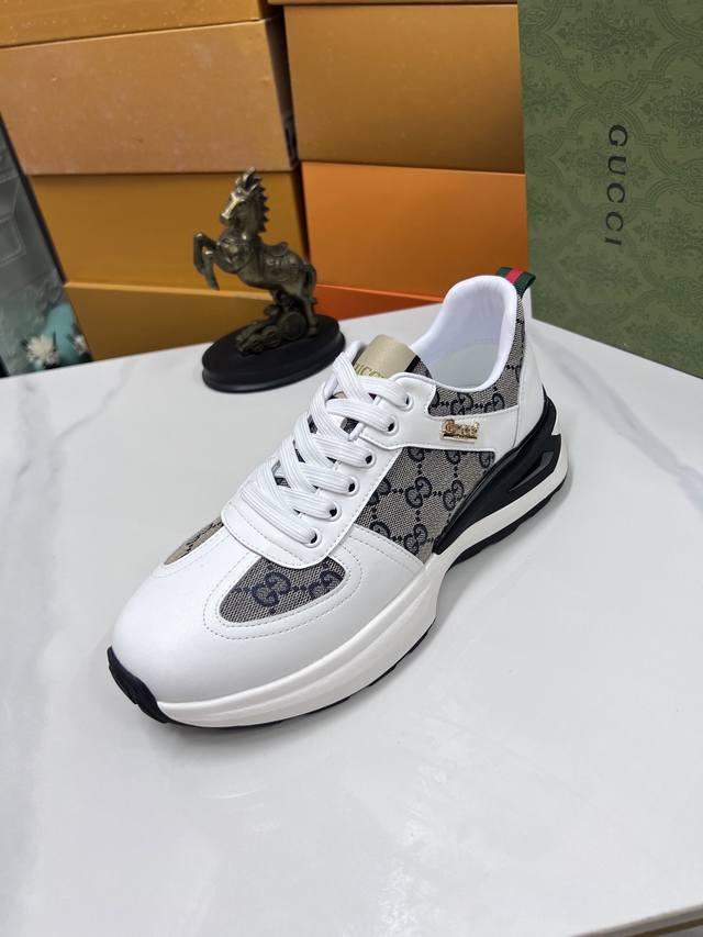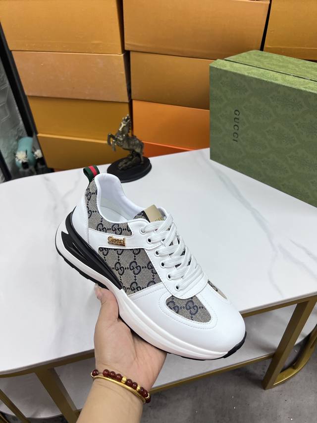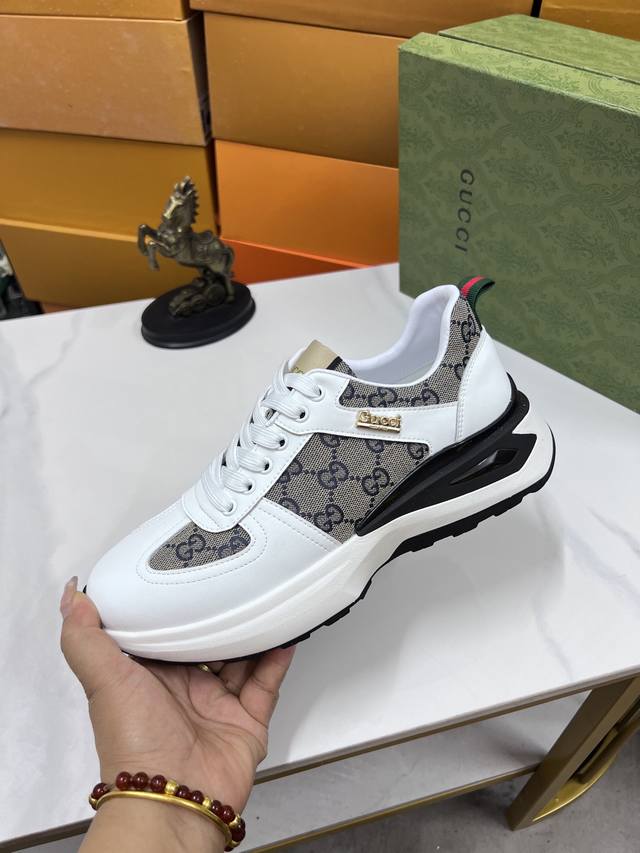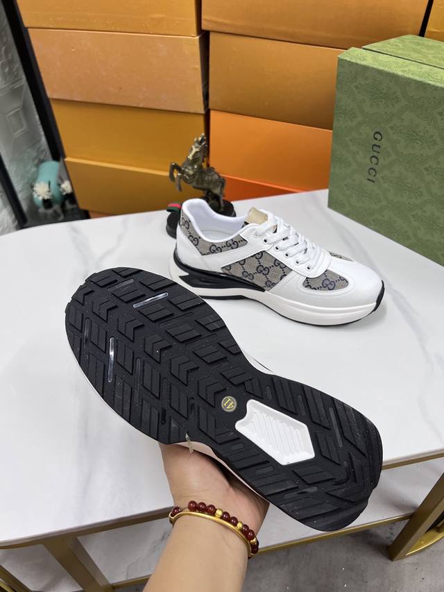 Factory price men's men's sports shoes original Gucci casual sneakers official website synchronized new imported waxed cowhide leather lining original midsole private custom glue foam outsole outsole combination 38-44R