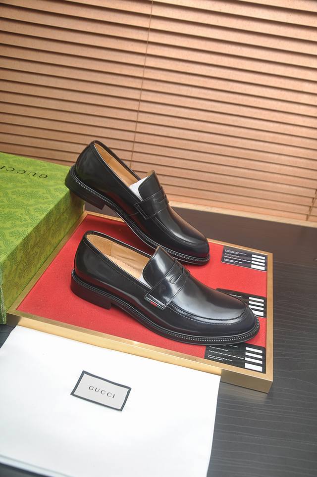 Factory Price P Gucci, Italy's top luxury men's shoe giant, presents its new all-cowhide leather lining. Authentic European style, pleasing to the eye. To ensure durability and prevent deformation, traditional methods are followed, yet innovation is still present. Original sheepskin is used, smooth, natural, and exceptionally glossy. Made from imported cowhide, the first choice for the wealthy. Sizes 38-45. 45 custom-made.