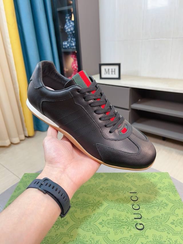 Factory Price P Gucci's new lace-up casual men's shoes are now available! The materials and workmanship surpass all other versions on the market. Made with top-grain cowhide leather and imported original perforated material, genuine leather lining, and a custom-molded soft outsole for superior comfort. Imported materials highlight the brand's unique charm. High-end customization available in sizes 38-44.