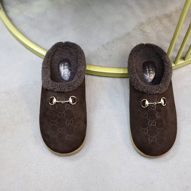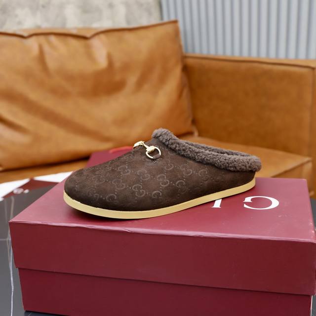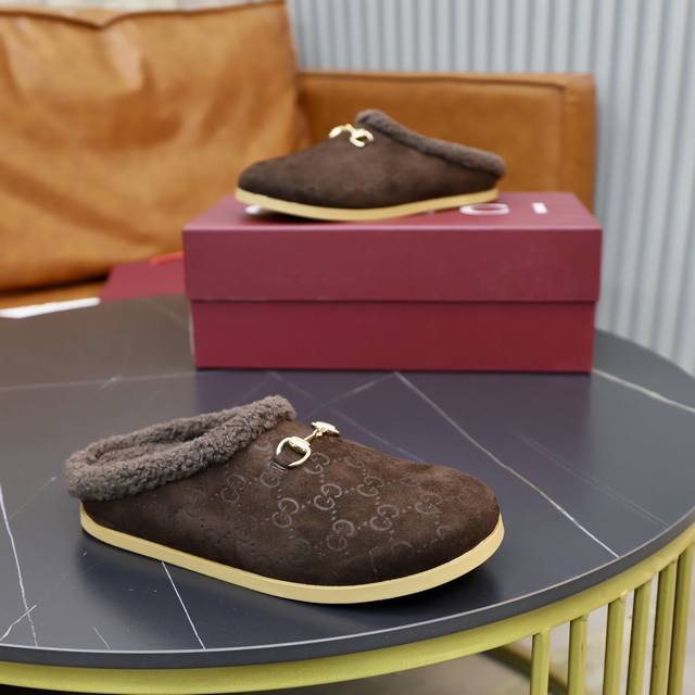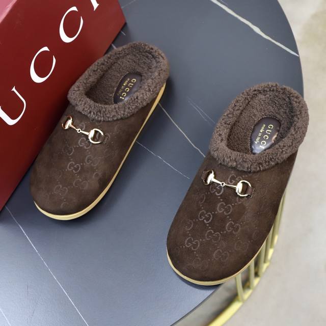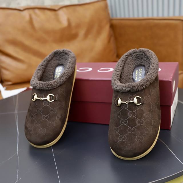 Factory Price (pp): Gucci Couple Style Gucci 25Ss New Gucci Autumn/Winter Series Gg Horsebit Mules Monogram Closed Toe Simple Half Slippers Classic Monogram PU Height Increasing Platform Ultra-Lightweight Ddd Upper: Original Custom Suede Cowhide Ddd Lining: Fleece Lining Ddd Original Printed Non-Slip Outsole Ddd Size: 35-45 DDD