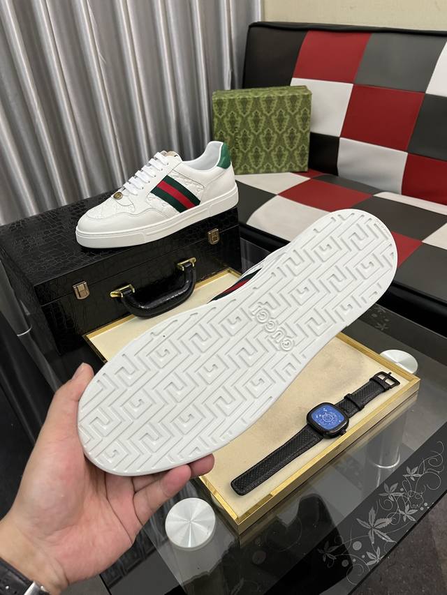Factory Price (pp): [Gucci] New Casual Shoes. Exclusive molded custom style, Italian imported cowhide upper, breathable genuine leather lining. Exclusive molded custom outsole, wear-resistant and slip-resistant. Department store level fit, perfect matching and on-foot effect, exquisite workmanship. Sizes: 38-442 colors available.