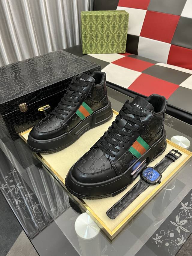 Factory Price (pp): Gucci new platform casual shoes, upper made of imported Italian top-grain cowhide. Fully imported genuine leather lining, a perfect 1:1 replica. Sole: Original factory-supplied sole, exclusive molded sole for super comfort. Original factory order, can be freely passed off as a genuine product in boutiques. Welcome to compare. Sizes: 38-444. Colors available.