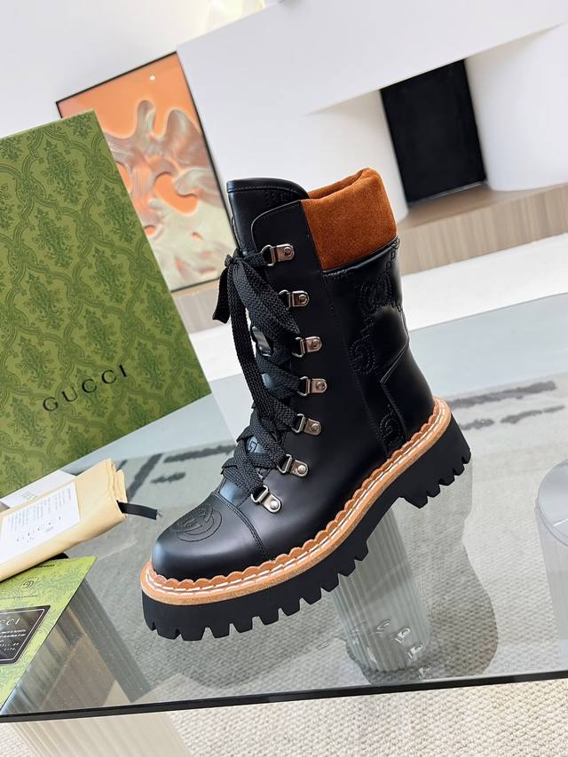Factory Price (pp): Women's Sports Shoes Original Autumn/Winter Gucci 8-inch Ankle Boots Original Mold Opening Double G Embroidered Toe Colorful Shoelaces, High-End Feel DDD Material: Cowhide, Matte Split Edge Beads DDD Insole: High-End Apricot Cowhide Lining DDD TPU Outsole Heel Height 4cm DDD Color: Black DDD Sizes: 34 42 34 and 42 require custom order DDD Packaging: Comes with card and cloth bag. DDD