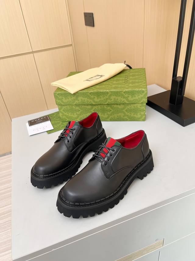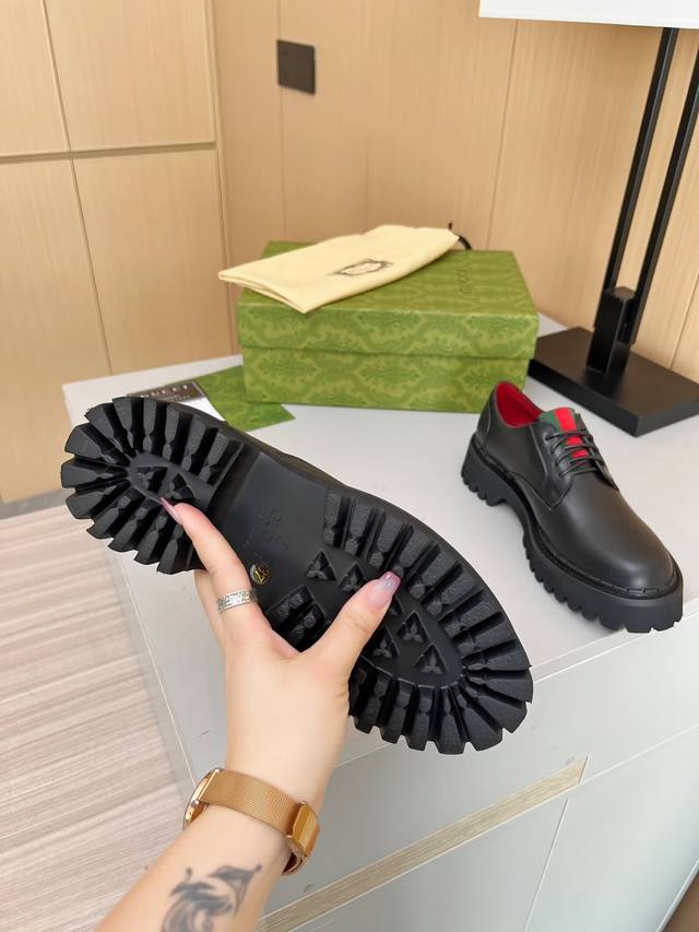 Factory Price (pp): Women's Sports Shoes Original Single Item, Latest Gucci Lace-up Loafers. These shoes are perfect for pairing with various styles of trendy clothing and highlight their fashion sense. A must-have! Material: Cowhide, Open Edge Beads Lining: Red Cowhide Lining Color: Black Sizes: 34, 41 Sizes 34 and 41 require custom orders Heel Height: 5cm Outsole: Foam Outsole Material Comes with a Cloth Bag and Card