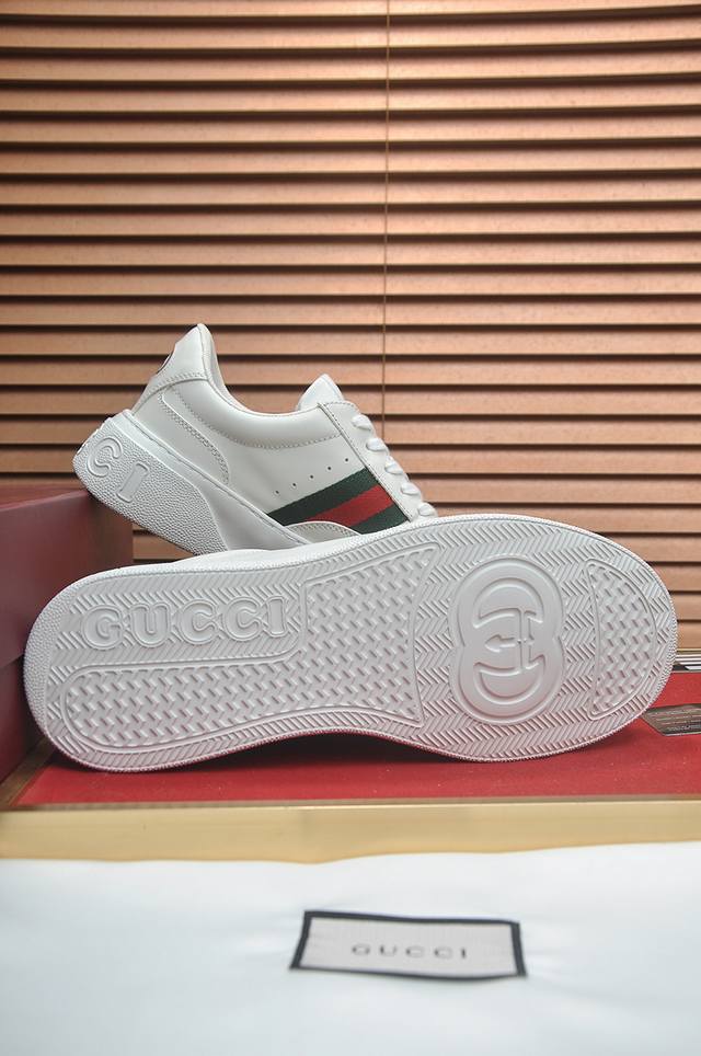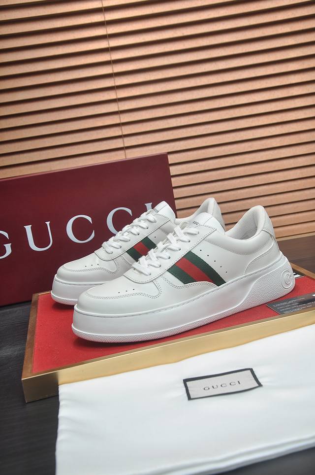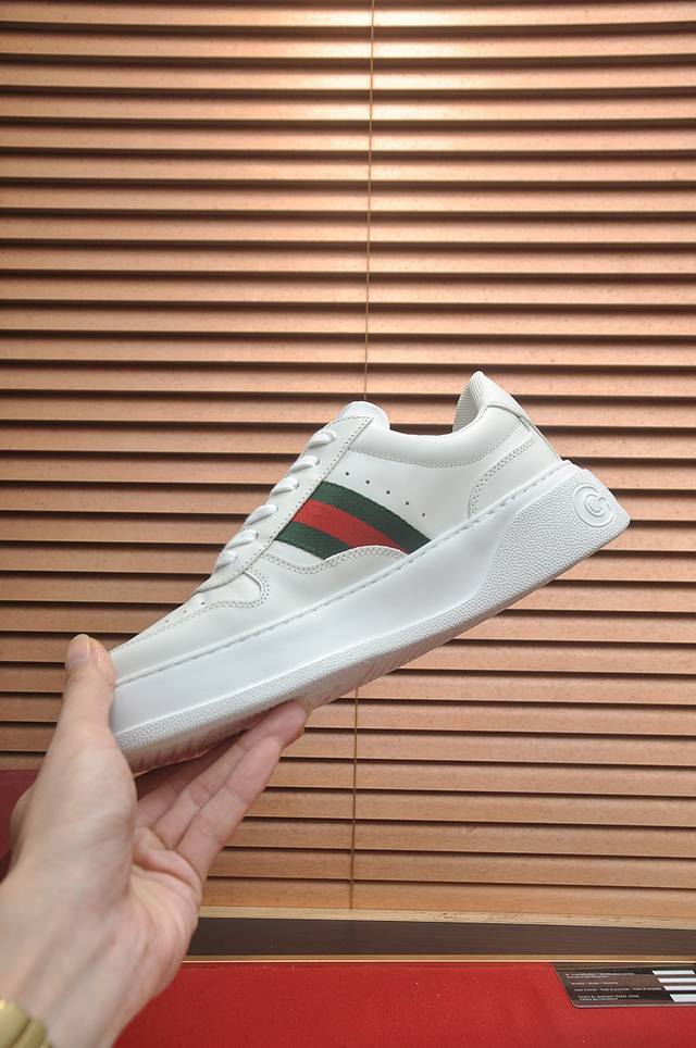 Factory Price. Top-tier Gucci shoes with genuine leather lining. Available in stores simultaneously. Features imported genuine leather upper, comfortable leather lining, excellent feel, original lightweight and shock-absorbing thickened foam outsole, simple color blocking, versatile and stylish. Sizes: 39-45. 38.45 is custom-made and non-refundable.