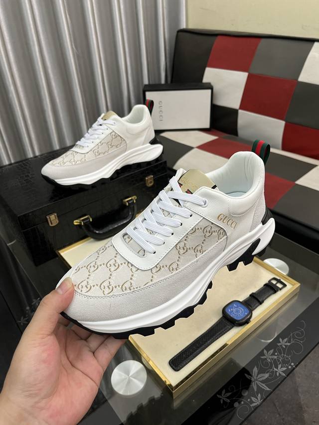 Factory-priced men's sports shoes. Original Gucci men's casual shoes are the ultimate trendsetter! Undeniably stylish, this is our top pick, featuring vibrant floral patterns and vibrant colors! The upper features premium brand-name printed fabric and cowhide, a breathable leather lining, and a durable rubber sole for a refined and elegant look. Extremely comfortable, look your best! Available in 38-444 colors .