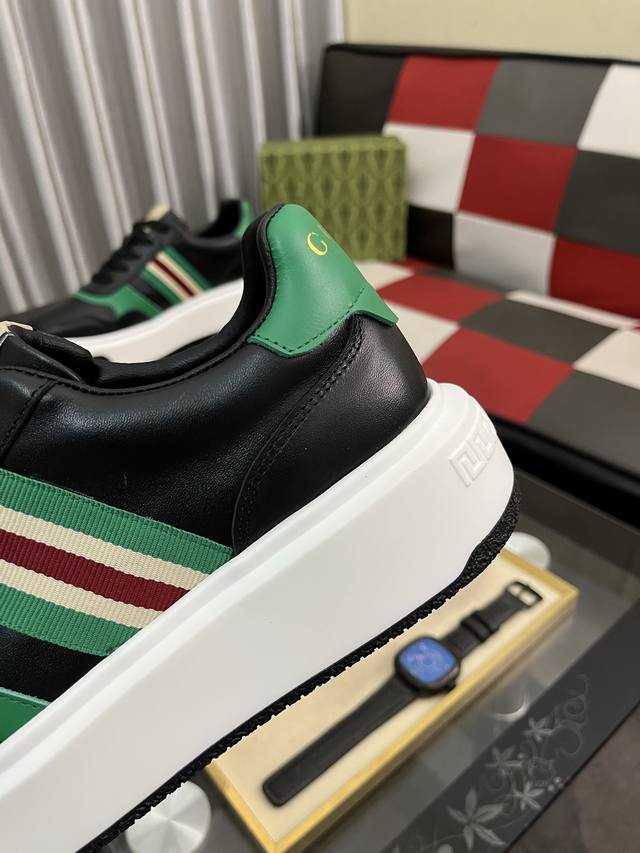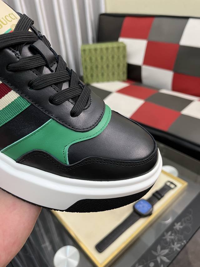 Factory-priced men's sports shoes. Original Gucci quality. ~ Unique modern sneakers. A must-have for trendy men. Imported from Italy, this stylish casual shoe features imported leather and a sheepskin lining that resists fading and rubbing. The sole is made exclusively from the original manufacturer, featuring a French, relaxed-style design that fits snugly and is incredibly comfortable. Just like the real thing, the photos are even better. Sizes: 38-443, available in