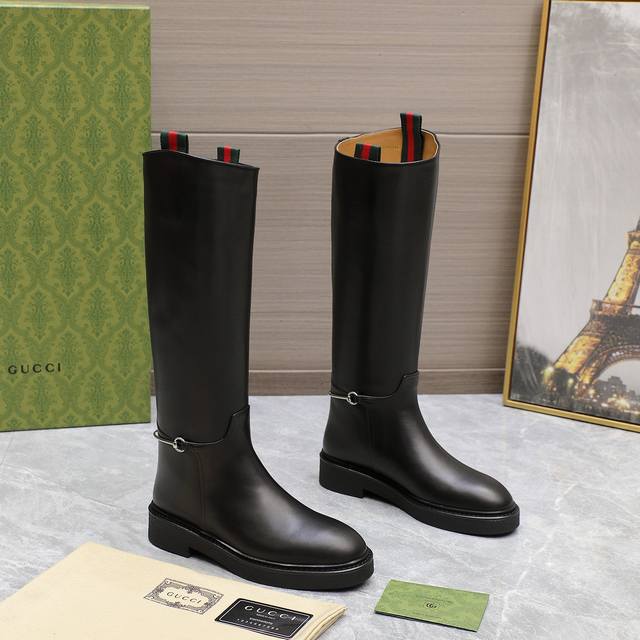 Genuine Gucci Fall/Winter Slim-fit Horsebit Boots, Show-style Slim-fit Boots, Top-tier Imported Silk Velvet Boots, Crafted with Exquisite Workmanship, Exactly the Original! This boot is made from imported silk velvet leather, cleverly incorporating a slim-fit horsebit design with delicate buckles, paying homage to the brand's long-standing horsemanship heritage. Classic shape, exquisite and sophisticated, interpreting Gucci's elegant style. Material: 1:1 replica of the original imported silk velvet leather + red and green webbing. Lining: Made from a single piece of cowhide, without any seams or splices. Large sole, molded for durability. Sizes: 35-40. 40 custom-made, no returns or exchanges. Volume price: