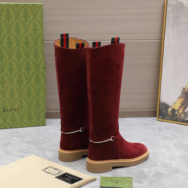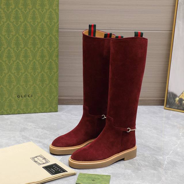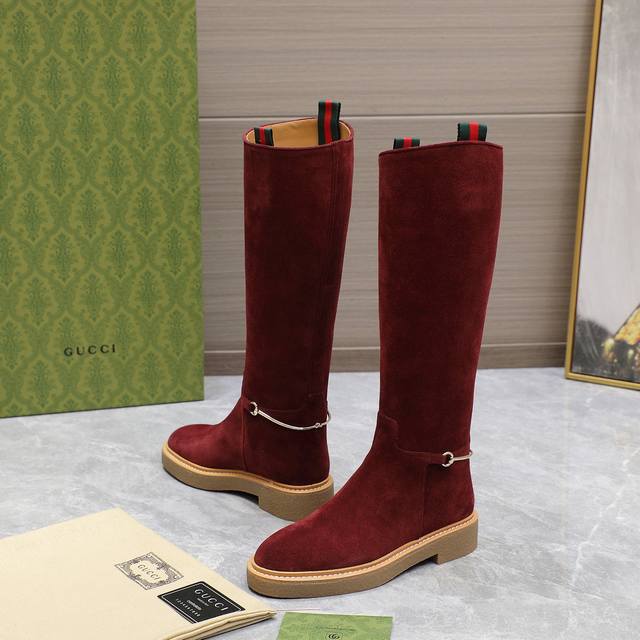 Genuine Gucci Fall/Winter Slim-fit Horsebit Boots, Show-style Slim-fit Boots, Top-tier Imported Silk Velvet Boots, Crafted with Exquisite Workmanship, Exactly the Original! This boot is made from imported silk velvet deerskin, cleverly incorporating a slim-fit horsebit design with delicate buckles, paying homage to the brand's long-standing equestrian heritage. Classic shape, exquisite and refined, interpreting Gucci's elegant style. Material: 1:1 replica of the original imported silk velvet leather + red and green webbing. Lining: Made from a single piece of cowhide, without any seams or splices. Large sole, molded for durability. Sizes: 35-40. 40 custom-made, no returns or exchanges. Volume discount: