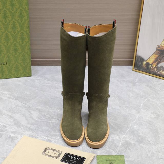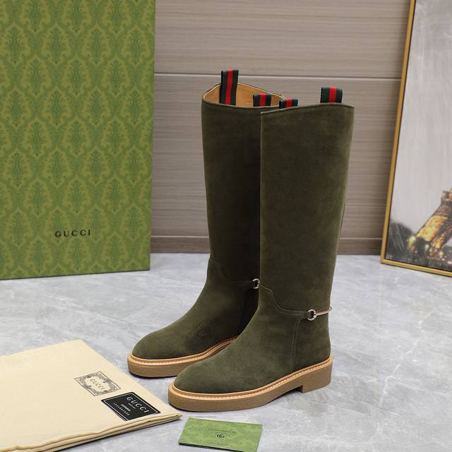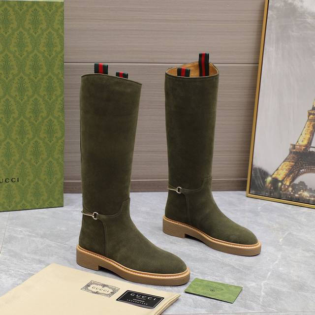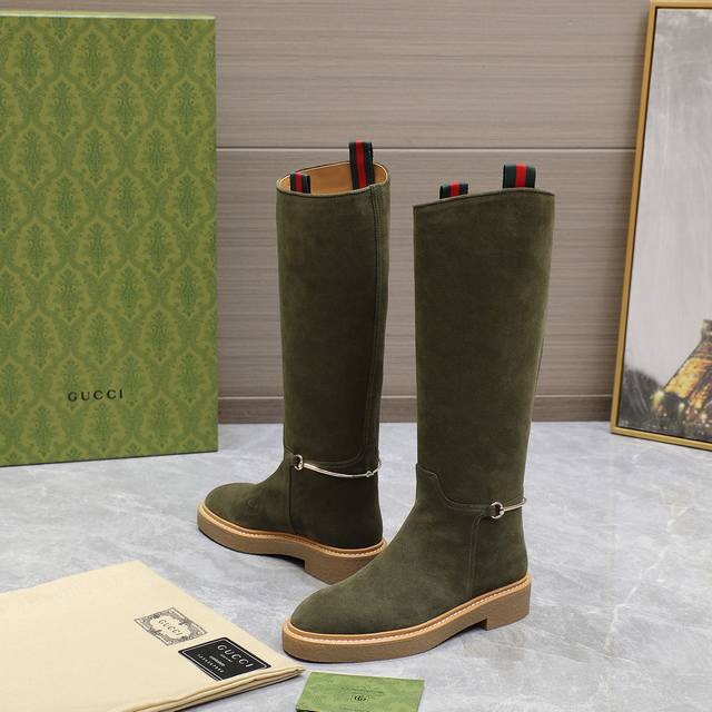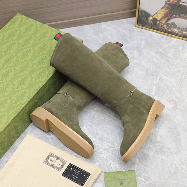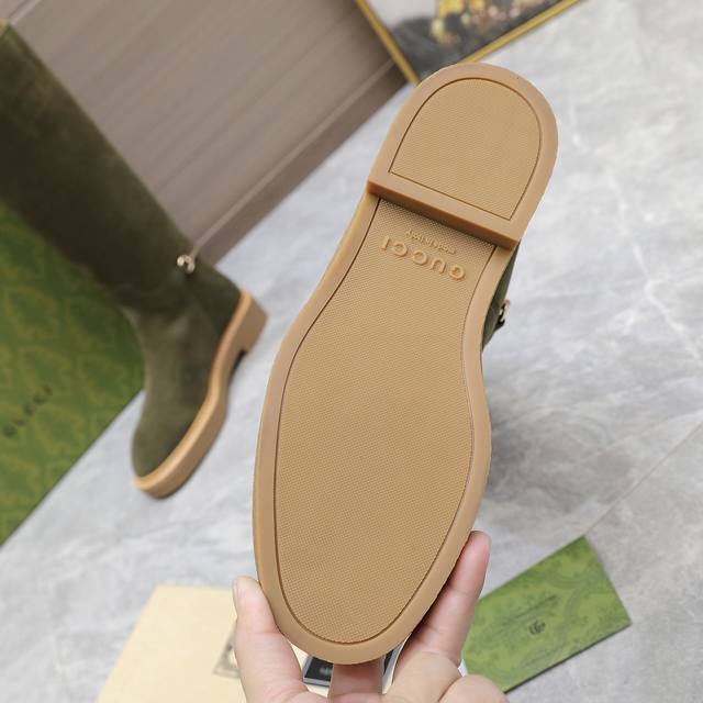 Genuine Gucci Fall/Winter Slim-fit Horsebit Boots, Show-style Slim-fit Boots, Top-tier Imported Silk Velvet Boots, Crafted with Exquisite Workmanship, Exactly the Original! This boot is made from imported silk velvet leather, cleverly incorporating a slim-fit horsebit design with delicate buckles, paying homage to the brand's long-standing horsemanship heritage. Classic shape, exquisite and refined, interpreting Gucci's elegant style. Material: 1:1 replica of the original imported silk velvet leather + red and green webbing. Lining: Made from a single piece of cowhide, without any seams or splices. Large sole, molded for durability. Sizes: 35-40. 40 custom-made, no returns or exchanges. Volume discount: