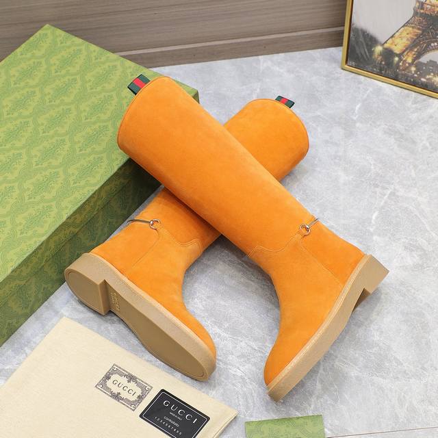 Gucci official website new women's autumn/winter wool boots, cowhide upper with