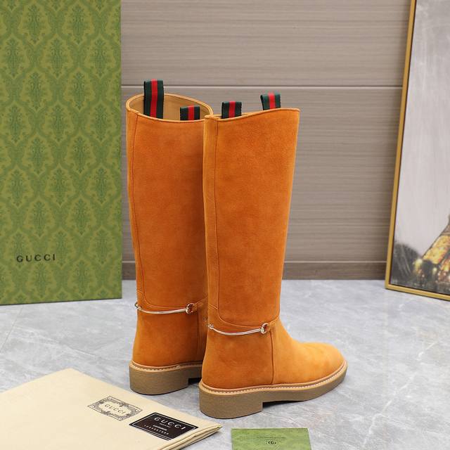 Genuine Gucci Fall/Winter Slim-fit Horsebit Boots, Top-tier Imported Silk Velve