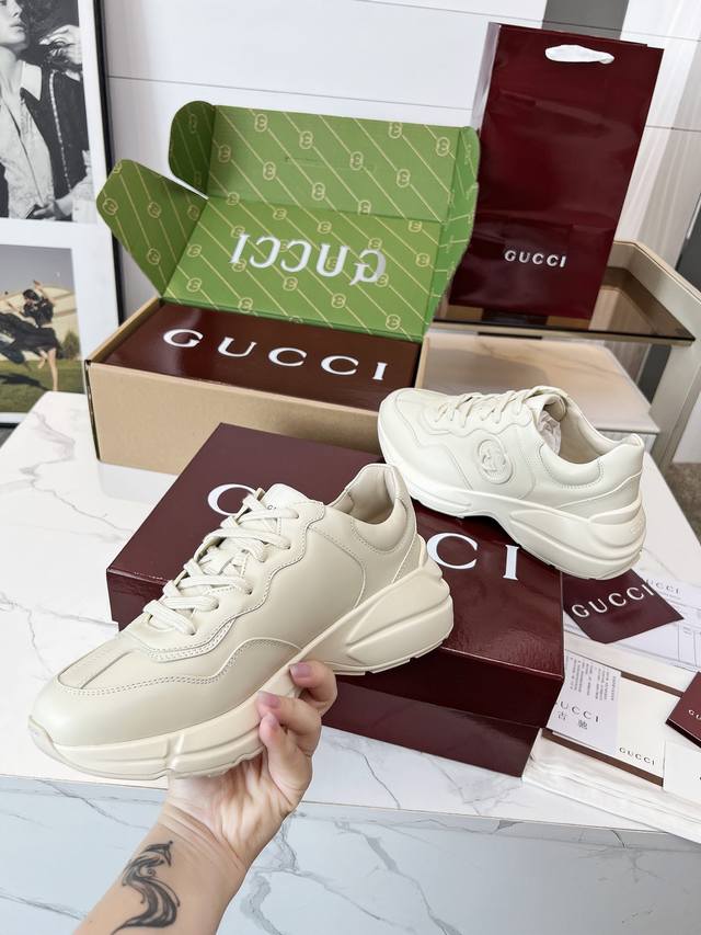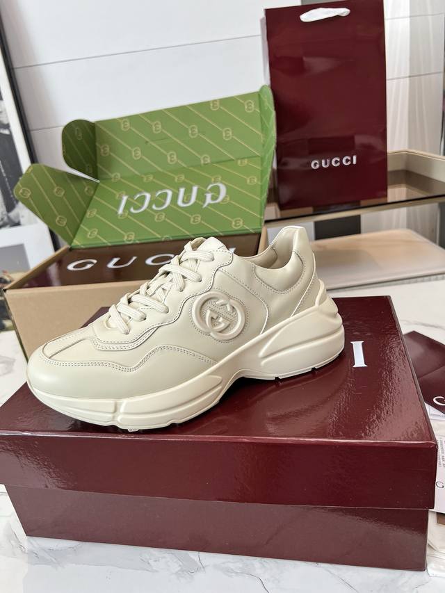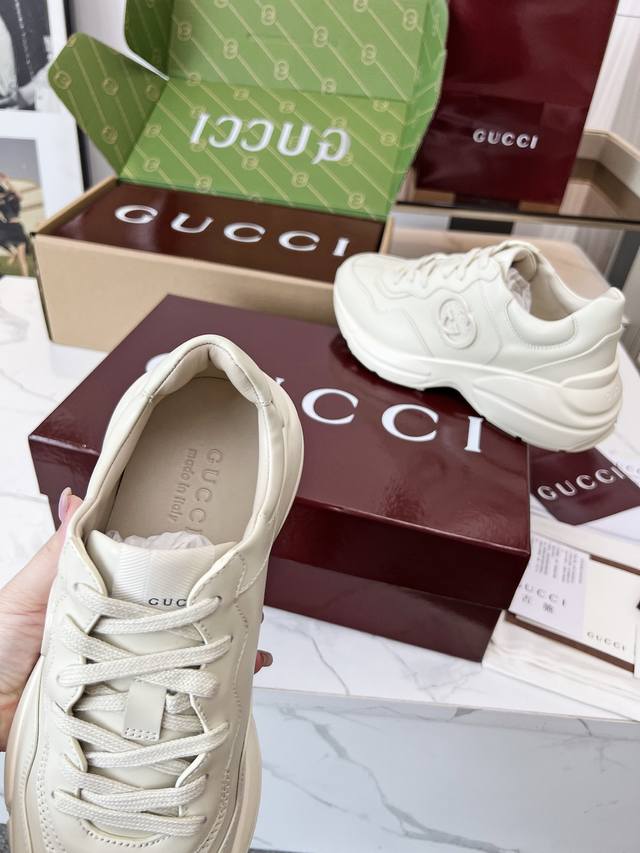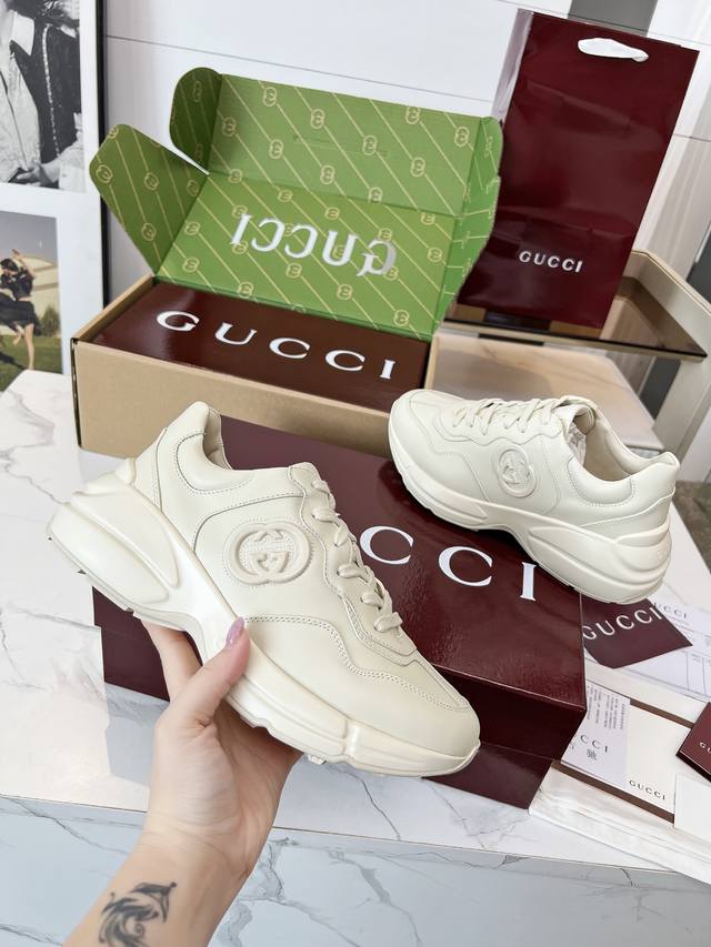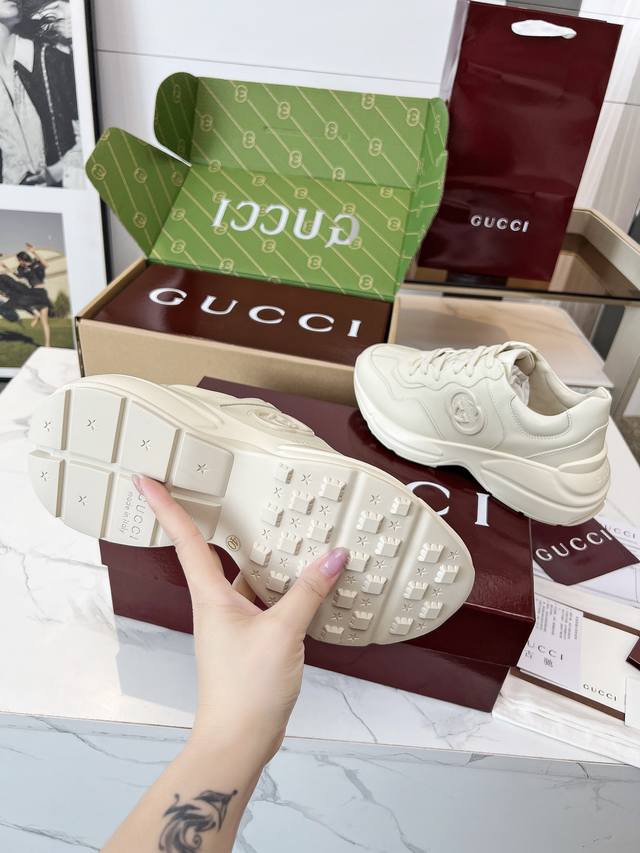 A classic reimagined with a retro twist: drawing on the vintage spirit of the era and infusing it with Gucci's contemporary aesthetic. The iconic chunky silhouette, bold lines, and layered design instantly evoke your retro DNA, making them a true street style sensation.