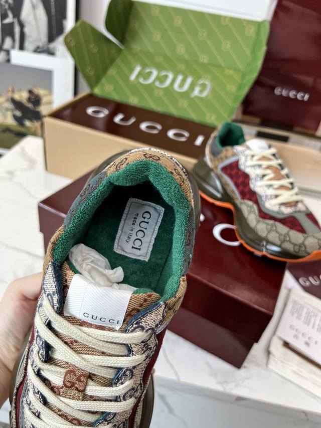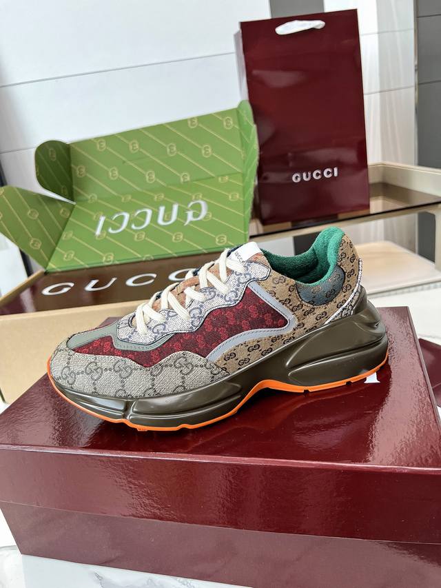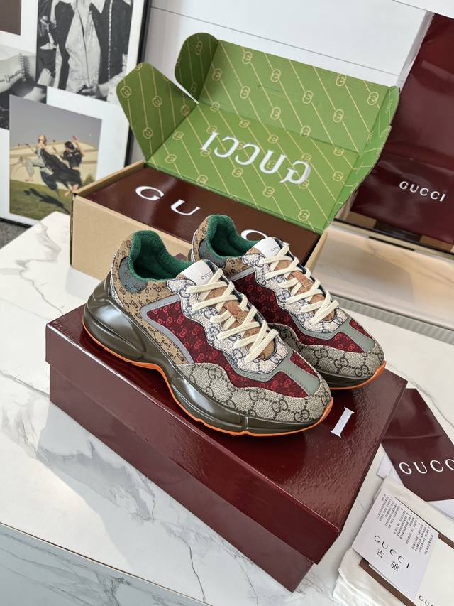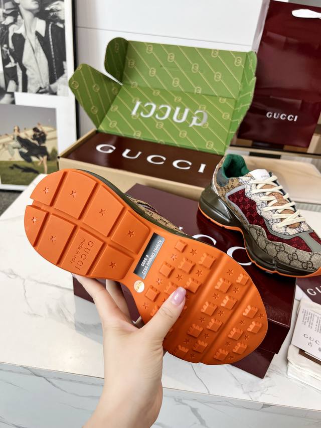 A classic reimagined with a retro twist: drawing on the vintage spirit of the era and infusing it with Gucci's contemporary aesthetic. The iconic chunky silhouette, bold lines, and layered design instantly evoke your retro DNA, making them a true street style sensation.