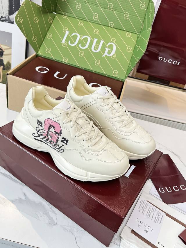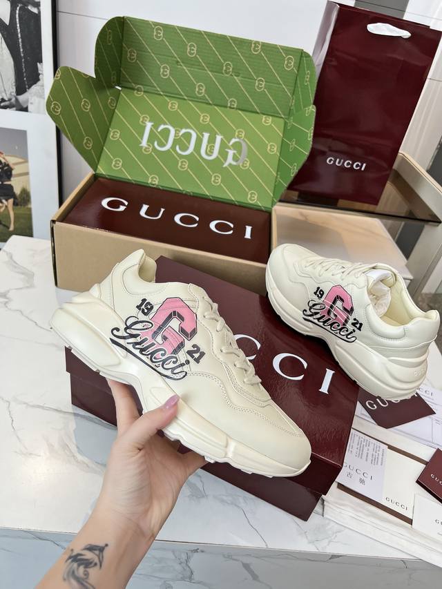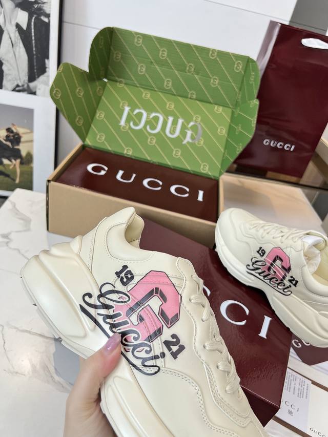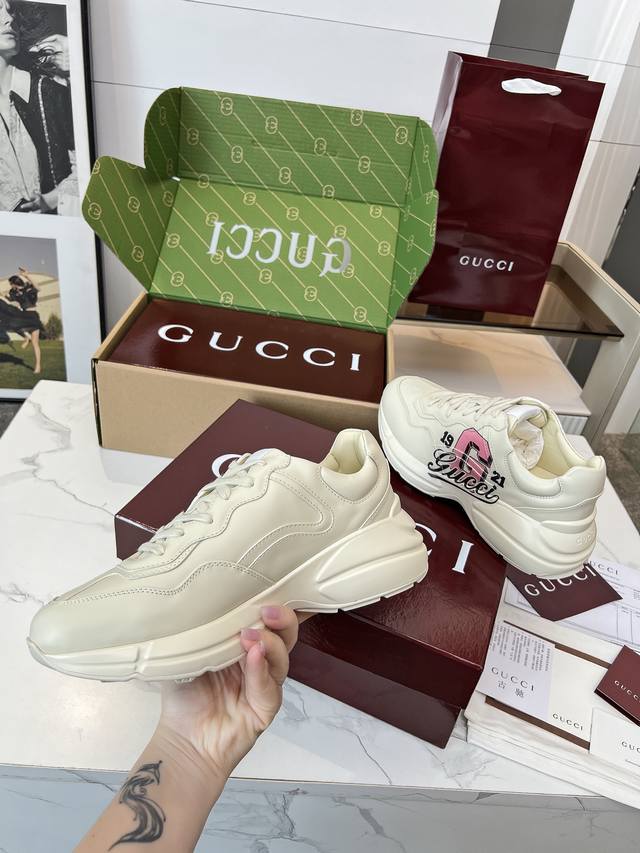 Gucci Dad Shoes, Make Your Luxury Statement! Tired of the same old thing? Yearning to stand out from the crowd? Gucci dad shoes are the style weapon missing from your wardrobe! A classic reimagined, a retro revival: Drawing inspiration from the retro spirit of bygone eras, infused with Gucci's contemporary aesthetic genes. The iconic chunky silhouette, bold lines, and layered design instantly awaken your retro-chic DNA, making you the absolute visual focus on the street. The Double G Glory, Everywhere: The classic double G logo is ubiquitous, either prominently displayed or subtly integrated into the shoe's details. This is not only a brand symbol but also a silent declaration of your extraordinary taste and status. Wearing them, every step you take is radiant. Luxurious Materials, Meticulous Craftsmanship: Gucci never compromises on quality. Using top-grade leather, premium fabrics, and high-tech synthetic materials, crafted with exquisite craftsmanship. Every stitch, every inch of fabric speaks of the luxurious heritage of Italian manufacturing, durable and timeless.
