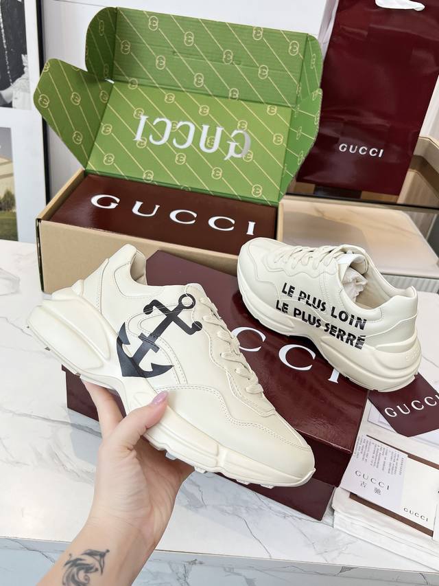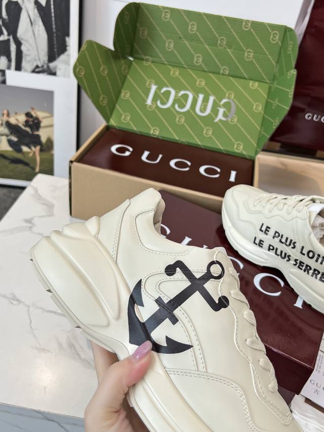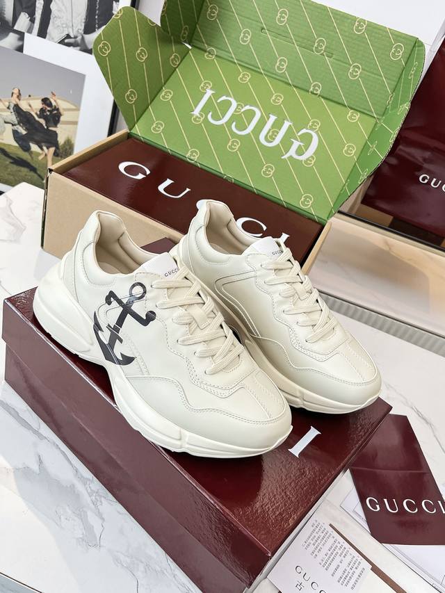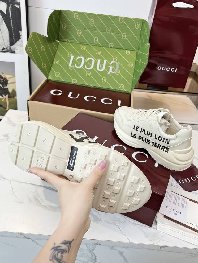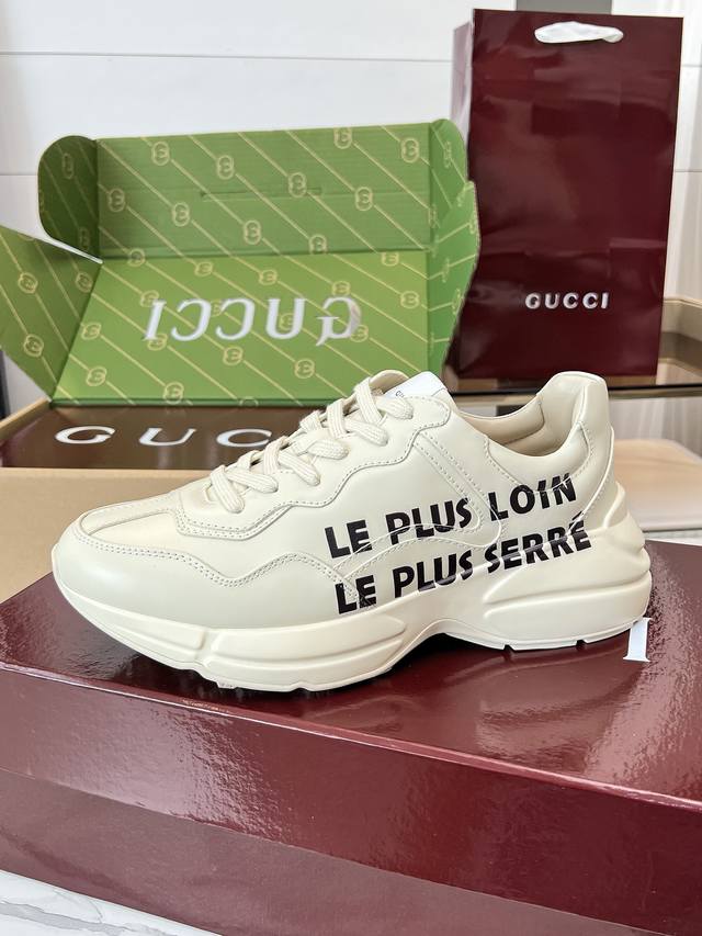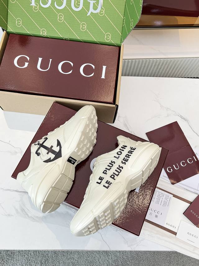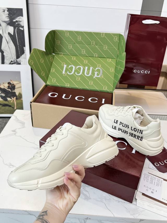 Gucci Dad Shoes, Make Your Luxury Statement! Tired of the same old thing? Yearning to stand out from the crowd? Gucci dad shoes are the style weapon missing from your wardrobe! A classic reimagined, a retro revival: Drawing inspiration from the retro spirit of bygone eras, infused with Gucci's contemporary aesthetic genes. The iconic chunky silhouette, bold lines, and layered design instantly awaken your retro-chic DNA, making you the absolute visual focus on the street. The Double G Glory, Everywhere: The classic double G logo is ubiquitous, either prominently displayed or subtly integrated into the shoe's details. This is not only a brand symbol but also a silent declaration of your extraordinary taste and status. Wearing them, every step you take is radiant. Luxurious Materials, Meticulous Craftsmanship: Gucci never compromises on quality. Using top-grade leather, premium fabrics, and high-tech synthetic materials, crafted with exquisite craftsmanship. Every stitch, every inch of fabric speaks of the luxurious heritage of Italian manufacturing, durable and timeless.