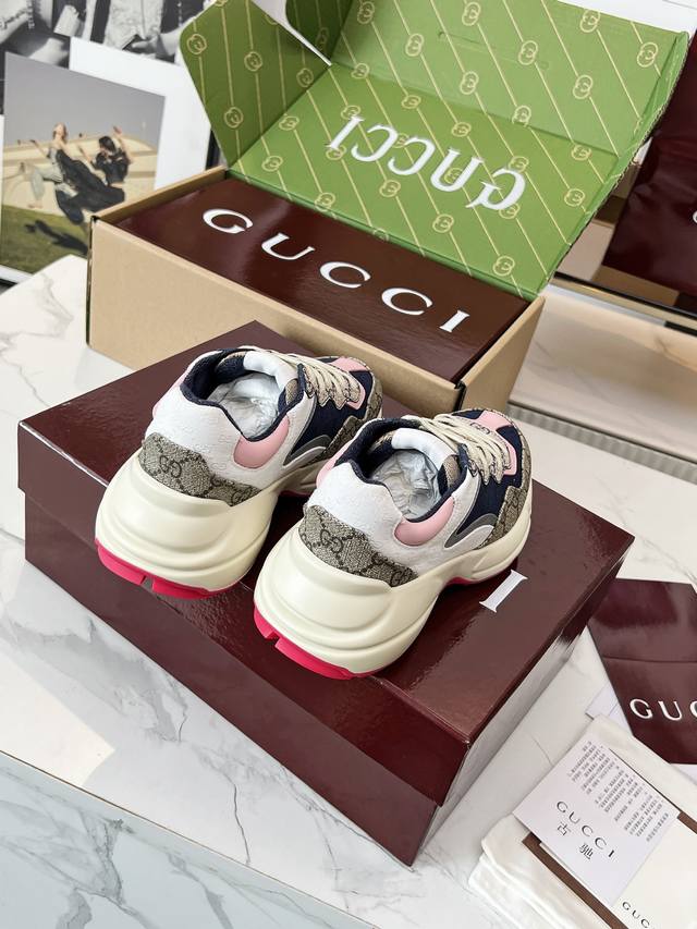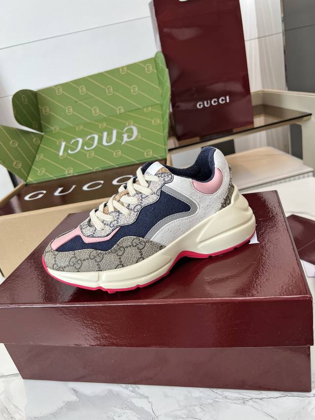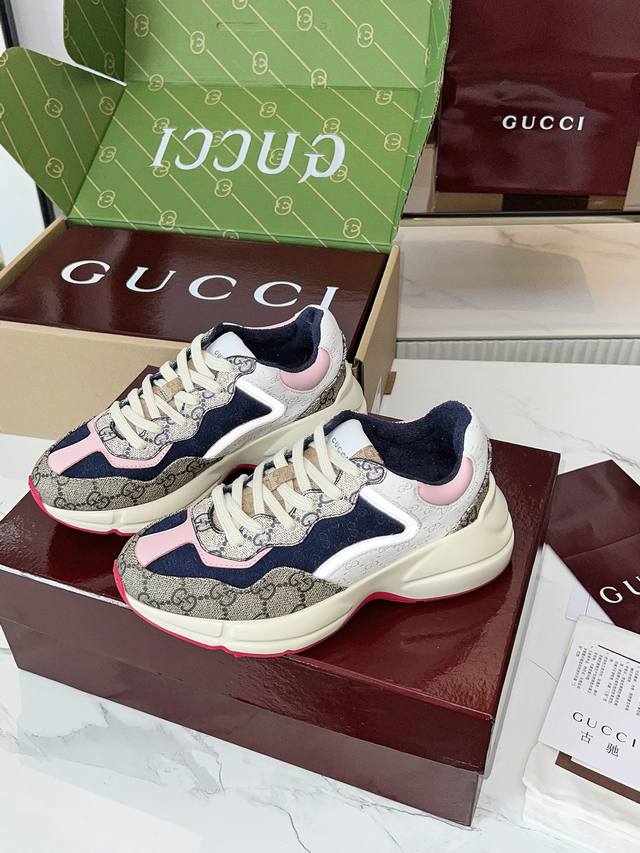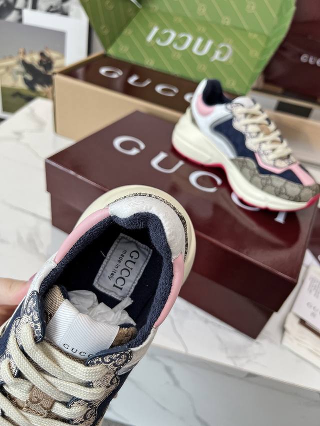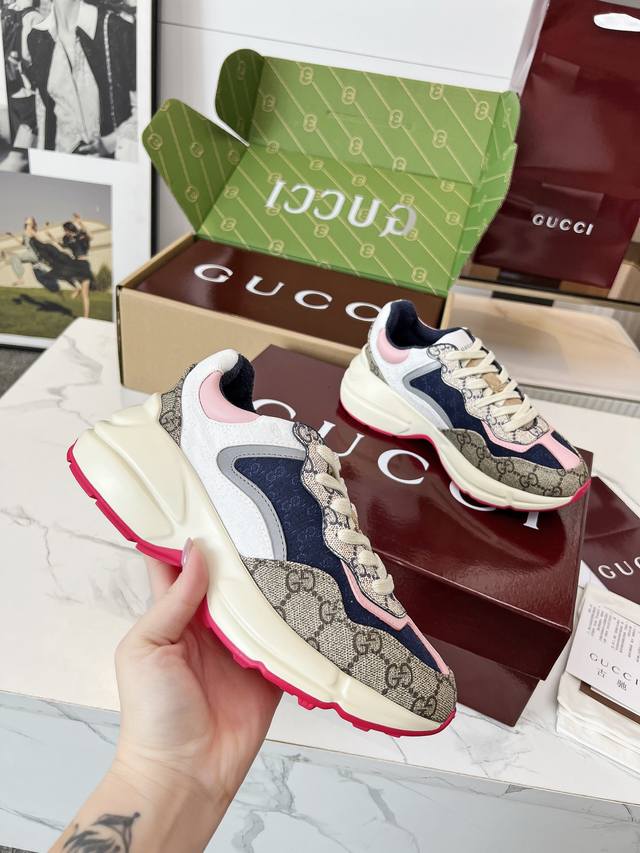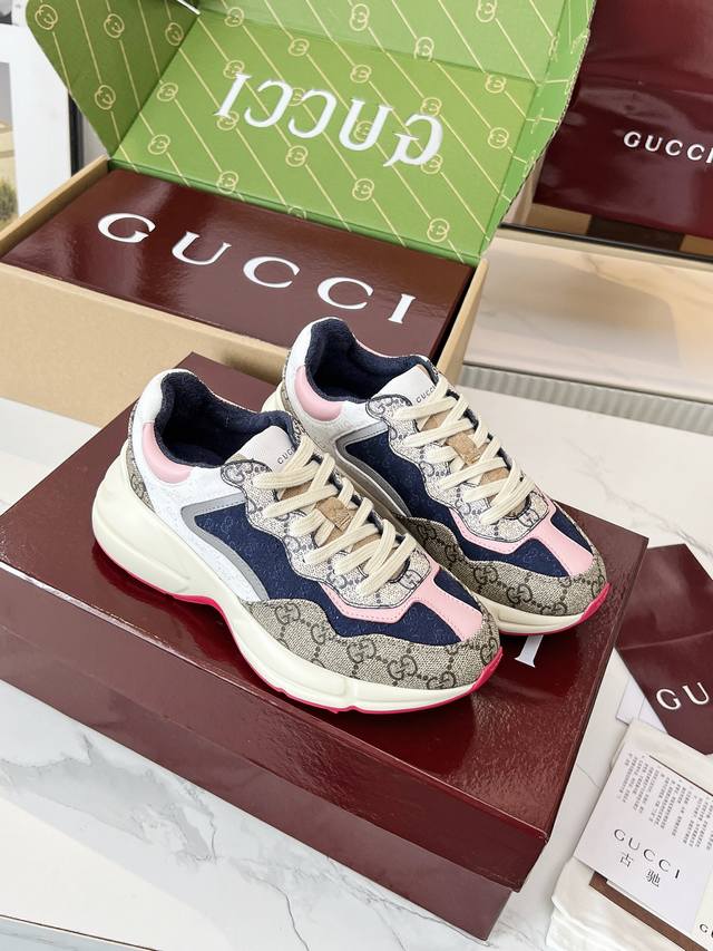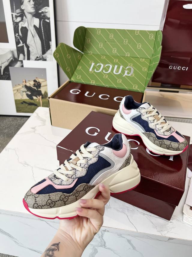 Gucci Dad Shoes, Make Your Luxury Statement! Tired of the same old thing? Yearning to stand out from the crowd? Gucci dad shoes are the style weapon missing from your wardrobe! A classic reimagined, a retro revival: Drawing inspiration from the retro spirit of bygone eras, infused with Gucci's contemporary aesthetic genes. The iconic chunky silhouette, bold lines, and layered design instantly awaken your retro-chic DNA, making you the absolute visual focus on the street. The Double G Glory, Everywhere: The classic double G logo is ubiquitous, either prominently displayed or subtly integrated into the shoe's details. This is not only a brand symbol but also a silent declaration of your extraordinary taste and status. Wearing them, every step you take is radiant. Luxurious Materials, Meticulous Craftsmanship: Gucci never compromises on quality. Using top-grade leather, premium fabrics, and high-tech synthetic materials, crafted with exquisite craftsmanship. Every stitch, every inch of fabric speaks of the luxurious heritage of Italian manufacturing, durable and timeless.