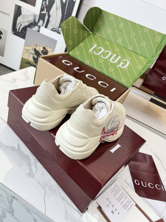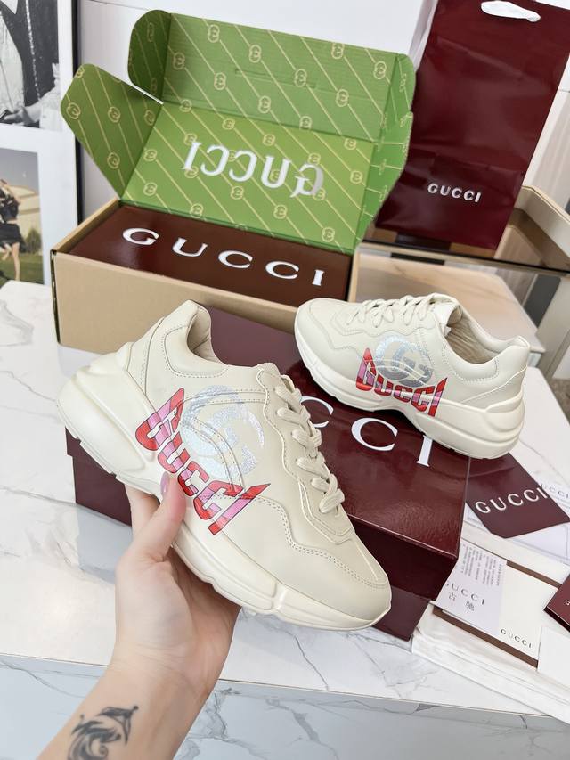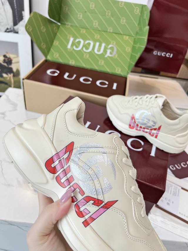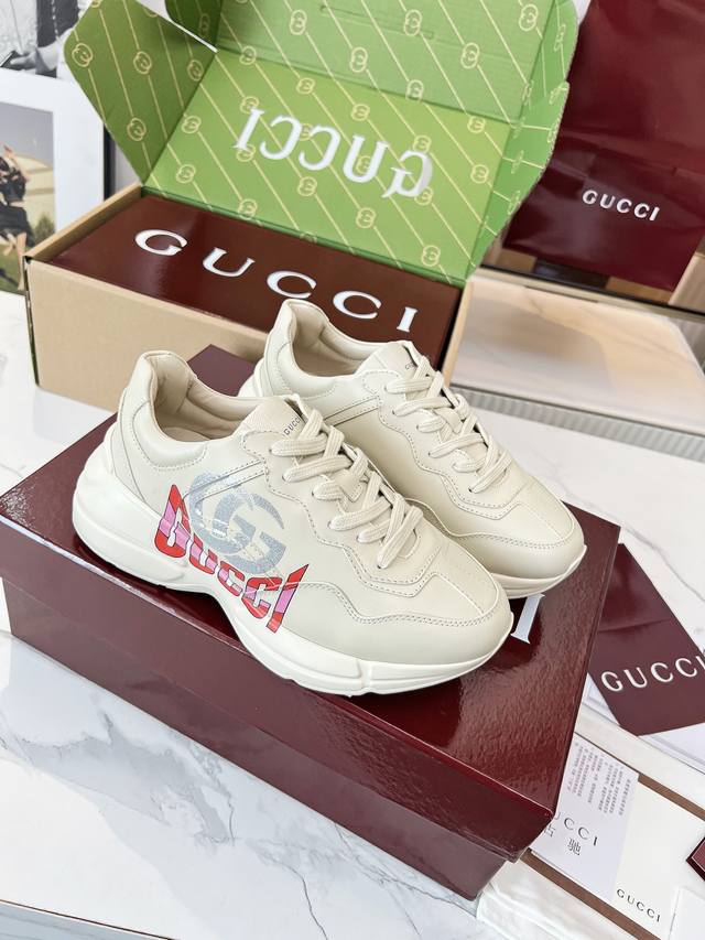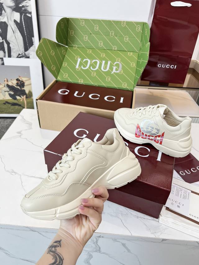 Gucci Dad Shoes, Make Your Luxury Statement! Tired of the same old thing? Yearning to stand out from the crowd? Gucci dad shoes are the style weapon missing from your wardrobe! A classic reimagined, a retro revival: Drawing inspiration from the retro spirit of bygone eras, infused with Gucci's contemporary aesthetic genes. The iconic chunky silhouette, bold lines, and layered design instantly awaken your retro-chic DNA, making you the absolute visual focus on the street. The Double G Glory, Everywhere: The classic double G logo is ubiquitous, either prominently displayed or subtly integrated into the shoe's details. This is not only a brand symbol but also a silent declaration of your extraordinary taste and status. Wearing them, every step you take is radiant. Luxurious Materials, Meticulous Craftsmanship: Gucci never compromises on quality. Using top-grade leather, premium fabrics, and high-tech synthetic materials, crafted with exquisite craftsmanship. Every stitch, every inch of fabric speaks of the luxurious heritage of Italian manufacturing, durable and timeless.
