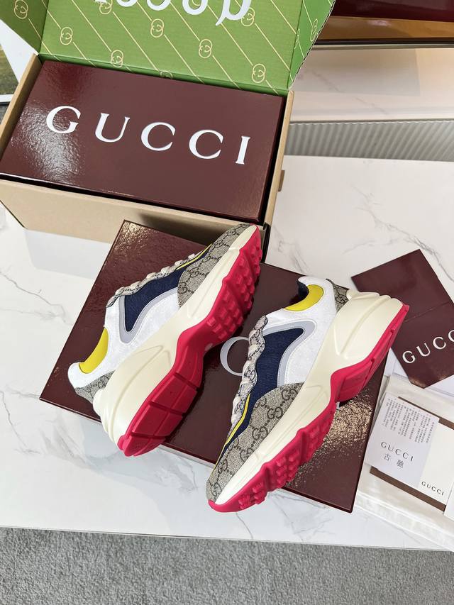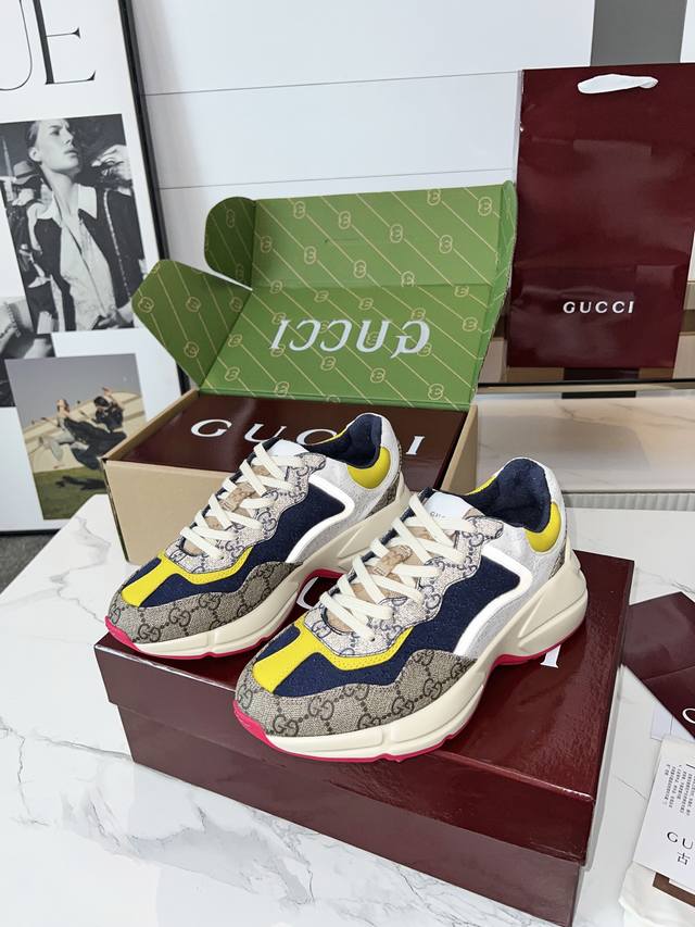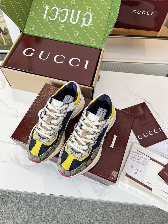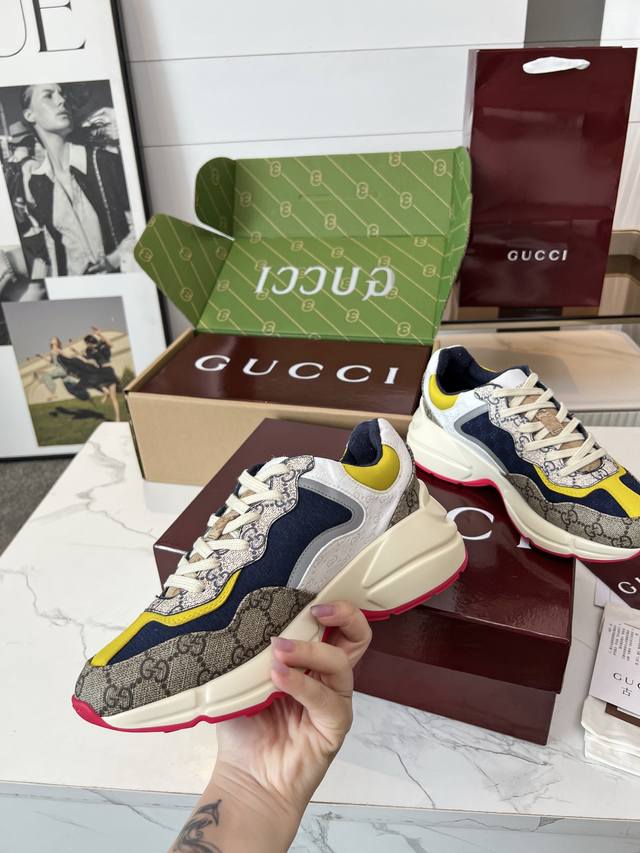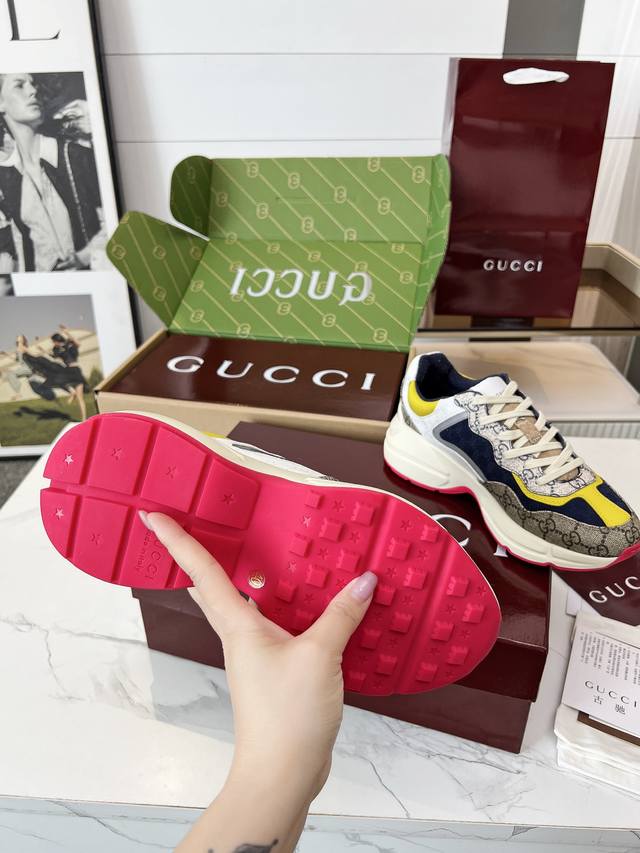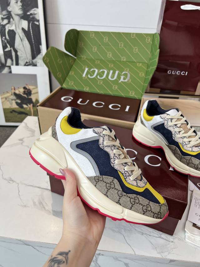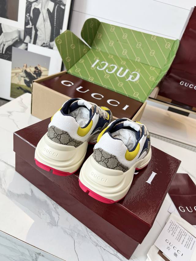 Gucci Dad Shoes, Make Your Luxury Statement! Tired of the same old thing? Yearning to stand out from the crowd? Gucci dad shoes are the style weapon missing from your wardrobe! A classic reimagined, a retro revival: Drawing inspiration from the retro spirit of bygone eras, infused with Gucci's contemporary aesthetic genes. The iconic chunky silhouette, bold lines, and layered design instantly awaken your retro-chic DNA, making you the absolute visual focus on the street. The Double G Glory, Everywhere: The classic double G logo is ubiquitous, either prominently displayed or subtly integrated into the shoe's details. This is not only a brand symbol but also a silent declaration of your extraordinary taste and status. Wearing them, every step you take is radiant. Luxurious Materials, Meticulous Craftsmanship: Gucci never compromises on quality. Using top-grade leather, premium fabrics, and high-tech synthetic materials, crafted with exquisite craftsmanship. Every stitch, every inch of fabric speaks of the luxurious heritage of Italian manufacturing, durable and timeless.