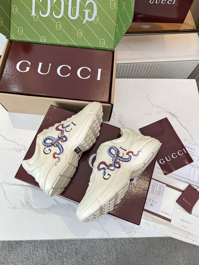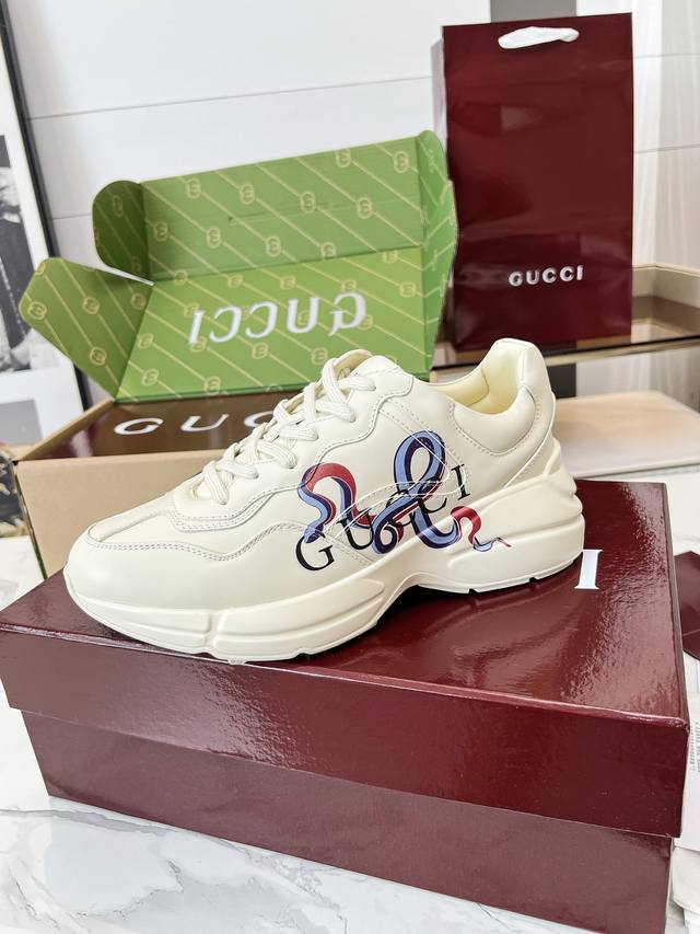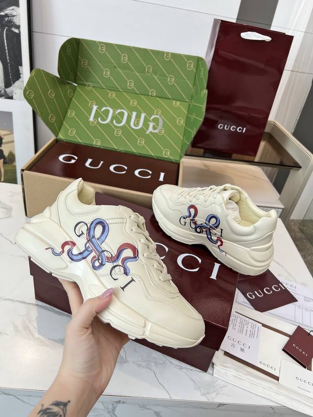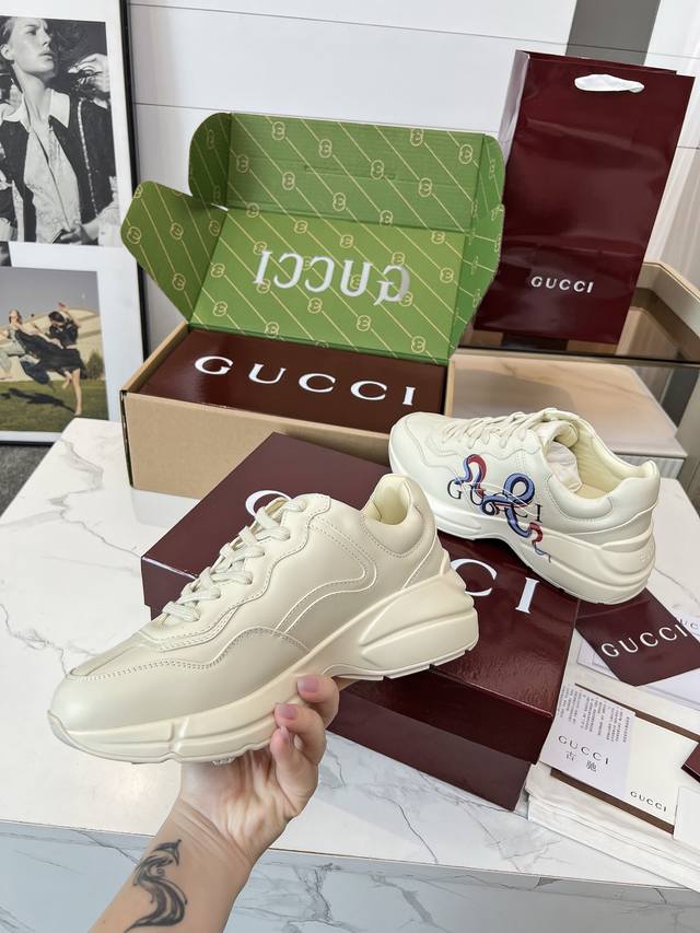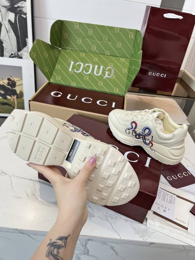 Gucci Dad Shoes, Make Your Luxury Statement! Tired of the same old thing? Yearning to stand out from the crowd? Gucci dad shoes are the style weapon missing from your wardrobe! A classic reimagined, a retro revival: Drawing inspiration from the retro spirit of bygone eras, infused with Gucci's contemporary aesthetic genes. The iconic chunky silhouette, bold lines, and layered design instantly awaken your retro-chic DNA, making you the absolute visual focus on the street. The Double G Glory, Everywhere: The classic double G logo is ubiquitous, either prominently displayed or subtly integrated into the shoe's details. This is not only a brand symbol but also a silent declaration of your extraordinary taste and status. Wearing them, every step you take is radiant. Luxurious Materials, Meticulous Craftsmanship: Gucci never compromises on quality. Using top-grade leather, premium fabrics, and high-tech synthetic materials, crafted with exquisite craftsmanship. Every stitch, every inch of fabric speaks of the luxurious heritage of Italian manufacturing, durable and timeless.