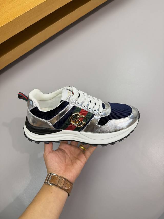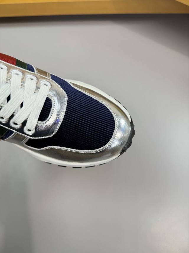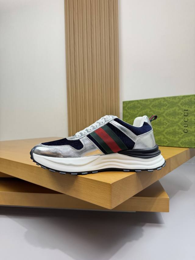 - Upper: Silver calfskin, brand corduroy fabric, brand webbing, metal buckles