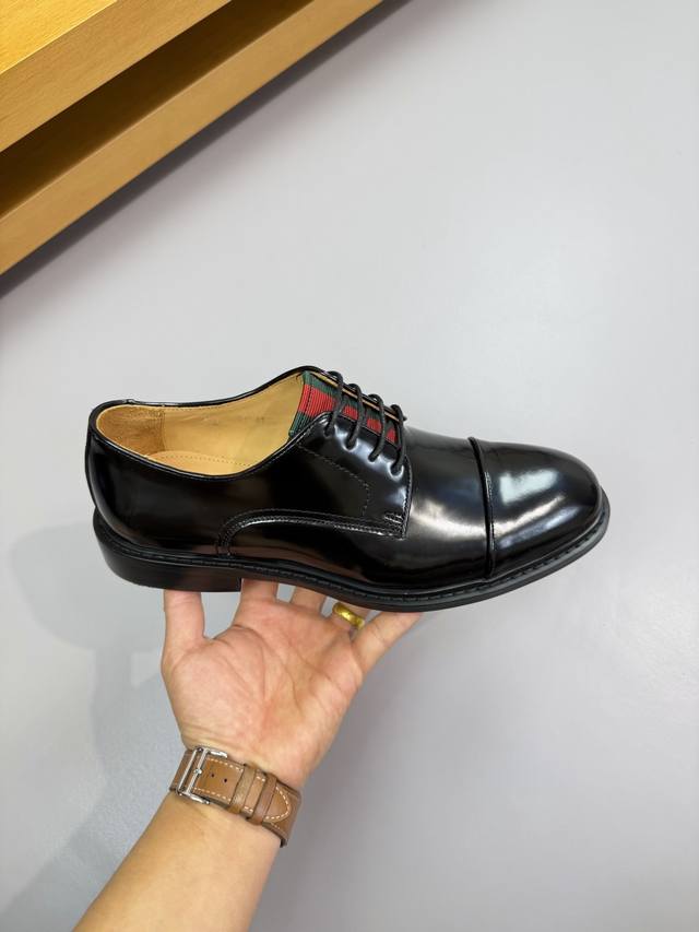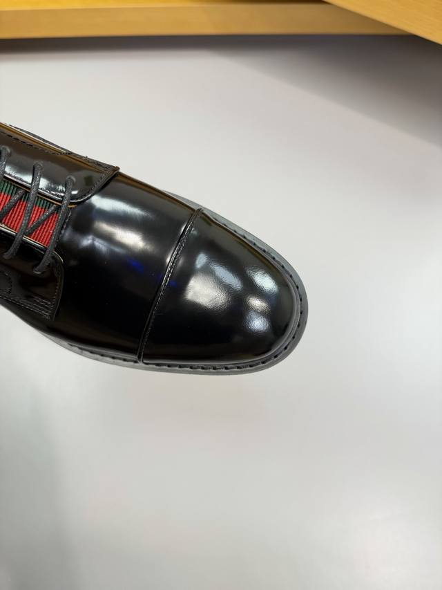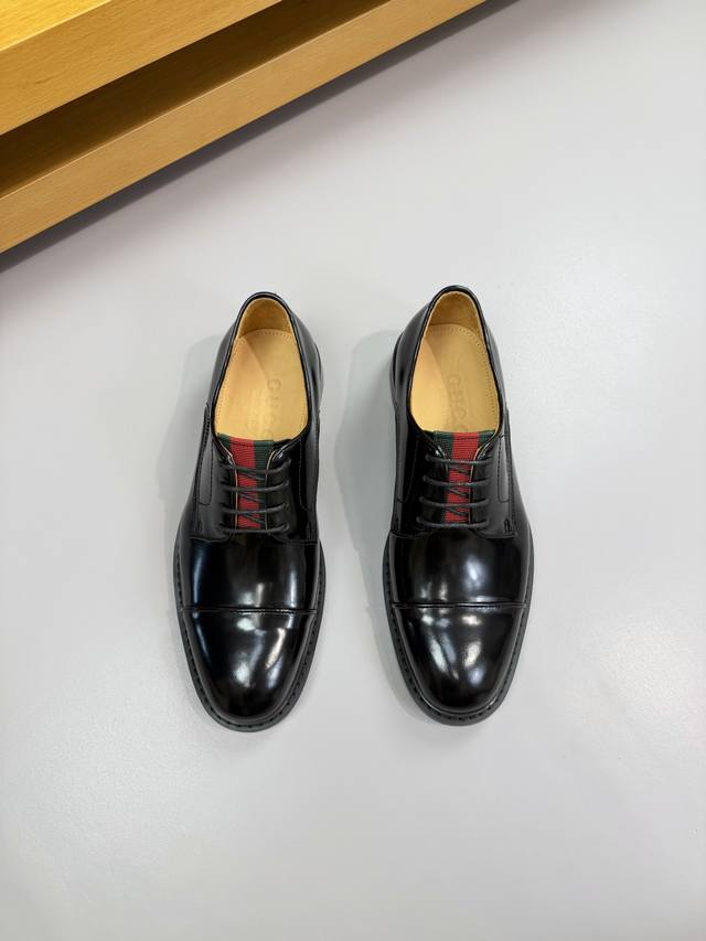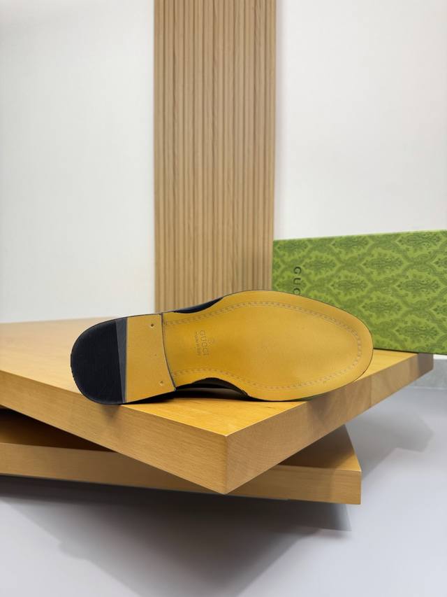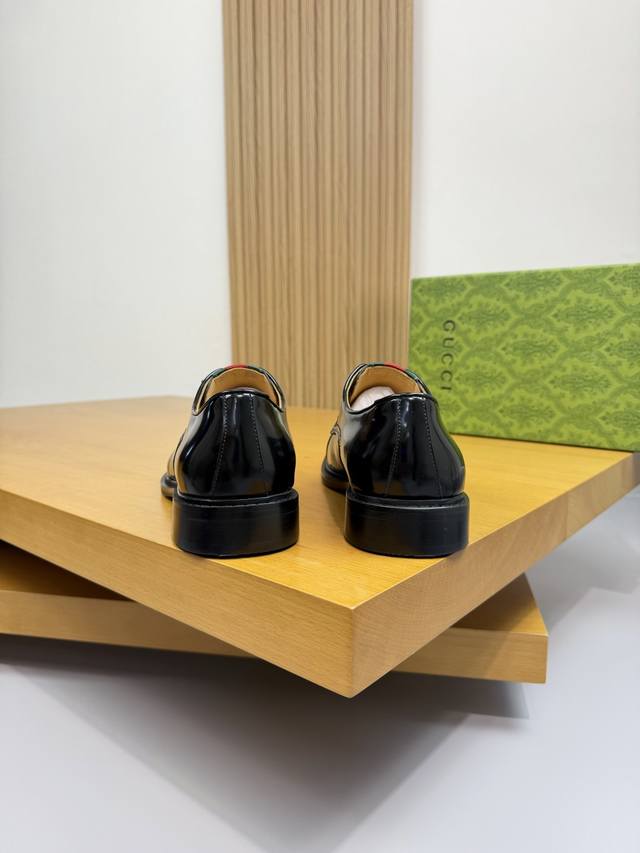 Gucci - High-end quality original single-piece formal leather shoes - Upper: Split-edge calfskin, brand webbing decoration on the tongue - Lining: Water-dyed cowhide - Outsole: Ultra-lightweight TPR rubber; composite molded outsole - Super high quality control and exquisite workmanship: highlighting high-end luxury - Size: 39-44 38, 45, custom orders available H0225