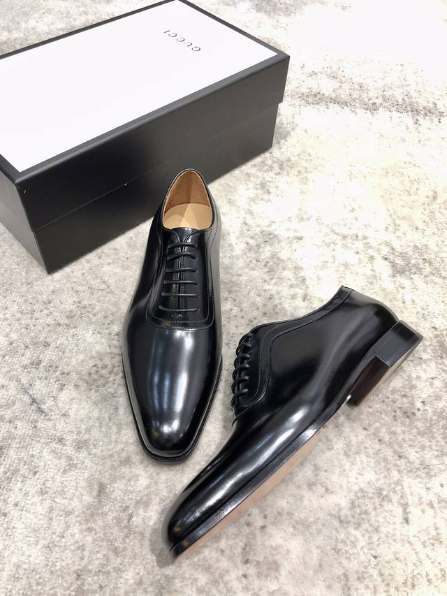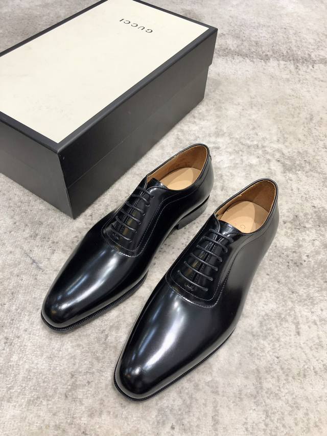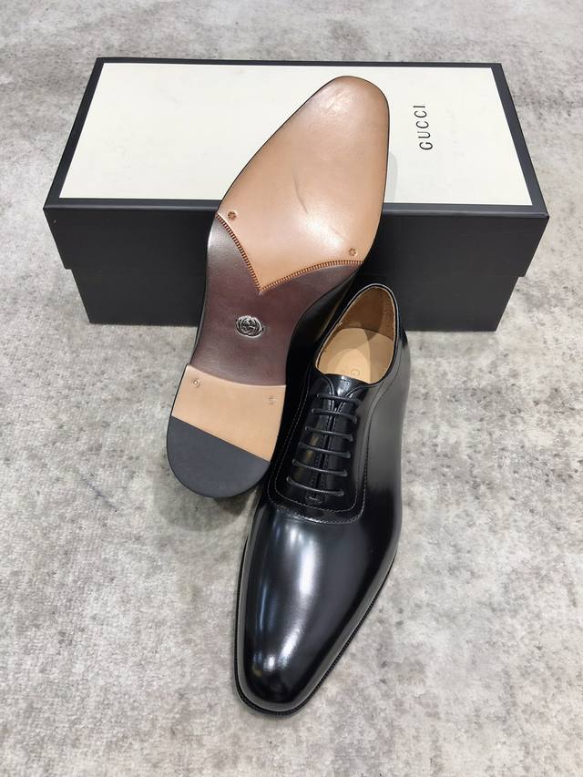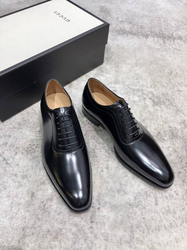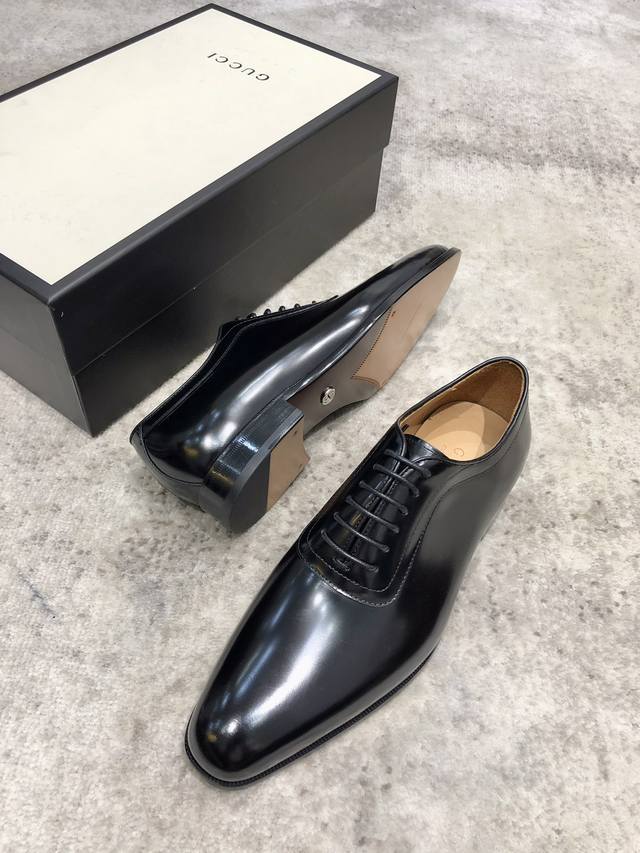 Gucci Men's Classic Oxford Shoes, Men's Business Formal Leather Shoes, Classic Style, Ultimate Art. The entire shoe is made of imported milk cowhide, meticulously selected for its fine pores and excellent luster. It is soft, durable, and resistant to deformation. The apricot calfskin lining is soft, comfortable, sweat-absorbent, and breathable. Genuine leather outsole with reinforced composite rubber heel with rivets for slip resistance and wear resistance. Goodyear welt construction ensures an excellent shoe shape, understated luxury, and suitable for all formal occasions! Original box and dust bag packaging! Standard sizes 39-44, 38.45 are non-refundable and non-exchangeable for custom orders.