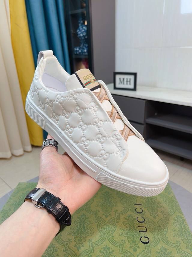 Gucci men's shoes, a high-end brand, featuring the latest fashionable casual men's shoes. A trendy and versatile style with a relaxed sporty feel. The upper is made of imported Italian top-grain cowhide leather, and the lining is crafted with exquisite workmanship. Original design, stylish and durable rubber outsole, lightweight and comfortable to wear. Sizes 38-44 DDD