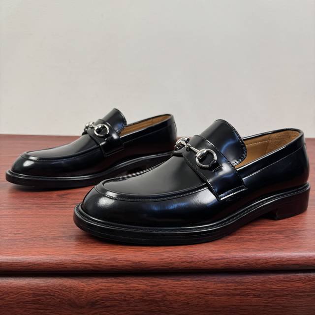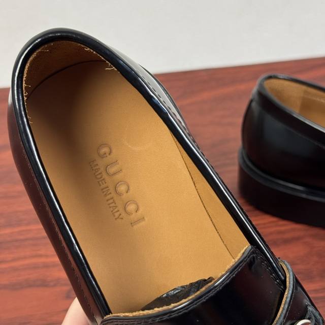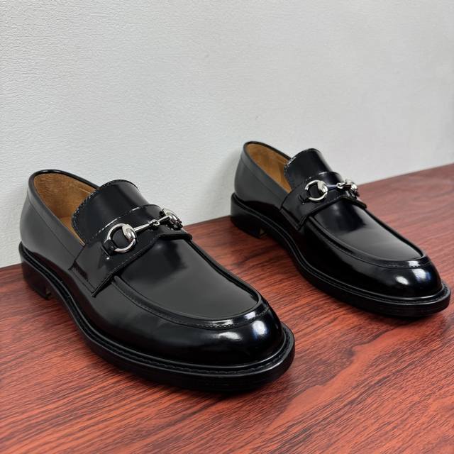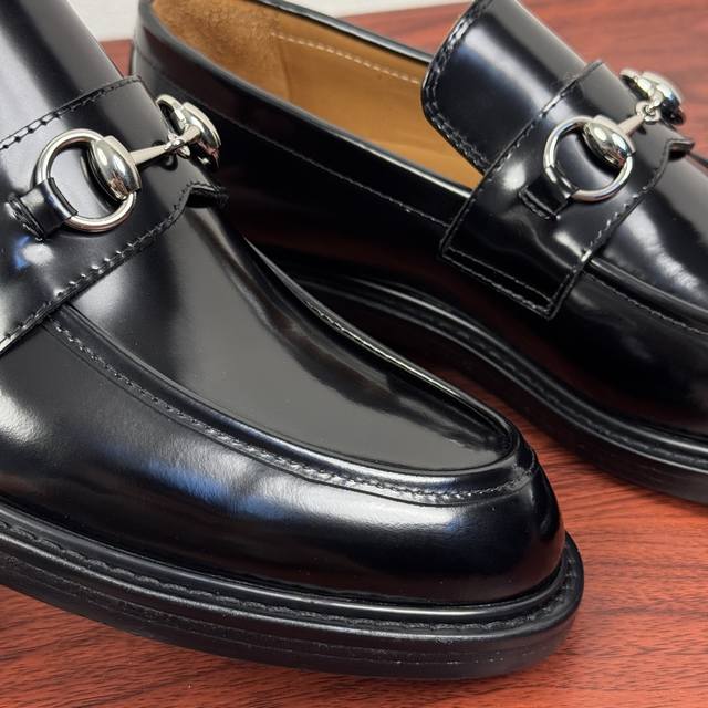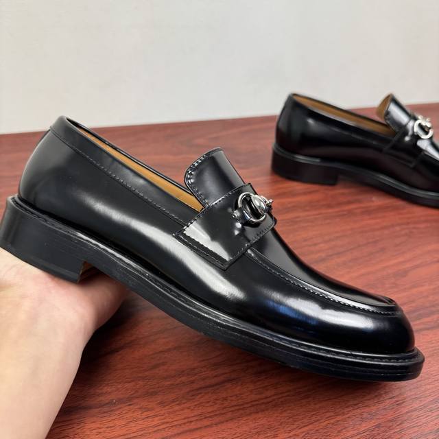 Gucci New Horsebit Loafers for Men! These classic horsebit loafers exude timeless elegance, paying homage to the brand's rich heritage. The meticulously crafted leather sole and semi-circular toe inject a fresh charm into the design. Iconic hardware and metal buckle details complement each other perfectly. The classic relaxed fit and solid-color leather highlight a simple yet classic style. Made from premium leather, the leather is supple, durable, and has excellent resilience. The lining is made of naturally dyed calfskin with evenly distributed perforations, providing a soft and comfortable feel. The thickened genuine leather outsole features a composite rubber heel for excellent comfort, wear resistance, and slip resistance. A top choice for understated luxury, these loafers are versatile and come with full packaging! Sizes: 39-40-41-42-43-44. Custom sizes available: 38, 45, 46. Item No.: 812158 Black Split Beaded