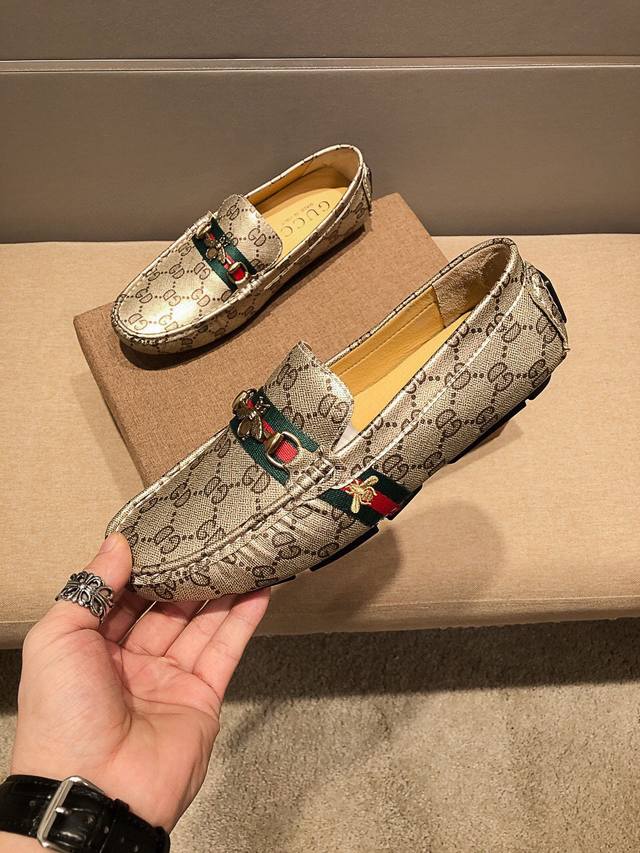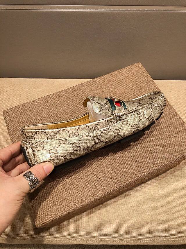 Gucci official men's casual moccasins, the official latest elements are popular all over the world, hot selling, original version, one to one counter, the upper is made of original first-layer crocodile leather imported from Italy, absolutely high-end original non-slip outsole, comfortable sheepskin lining, comfortable and quality speaks for itself, giving double face to others, standard size 37-45