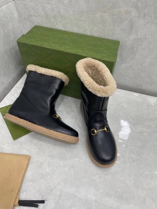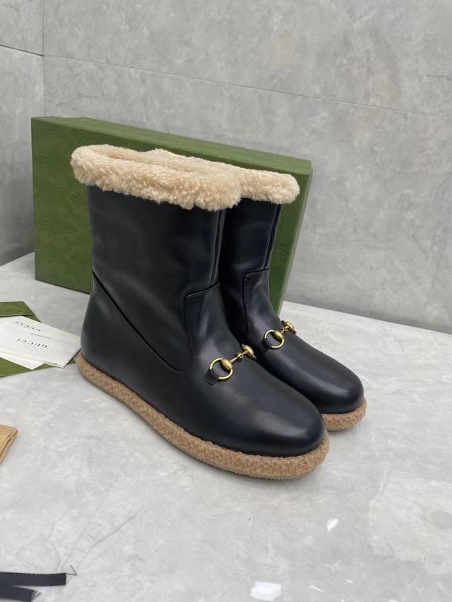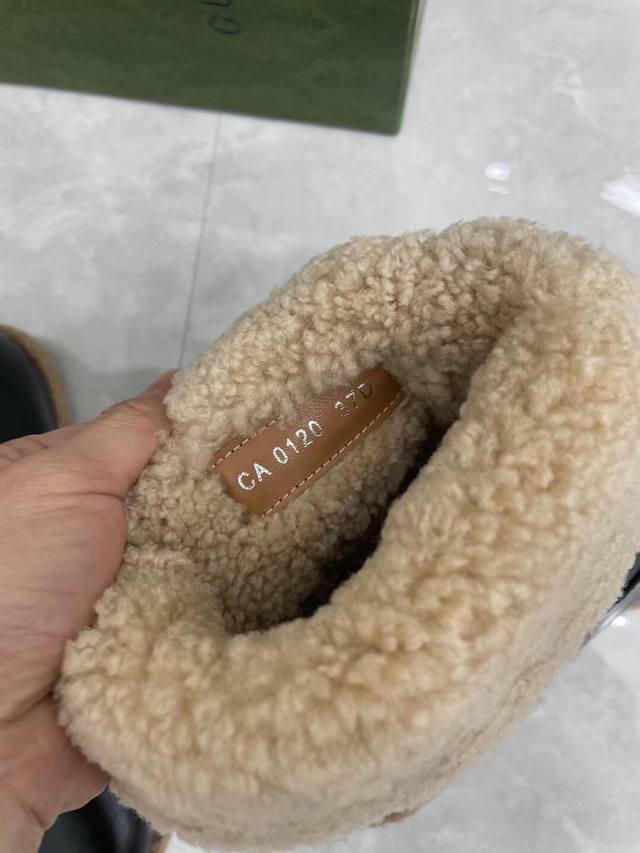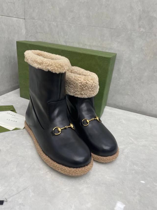 Gucci official website new women's autumn/winter wool boots, cowhide upper with hardware, Australian sheepskin and wool tedging, comfortable, warm and sweat-absorbent lining, sizes 35#-41# DDD
