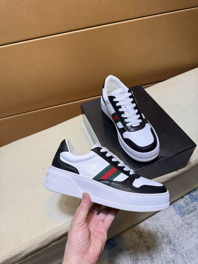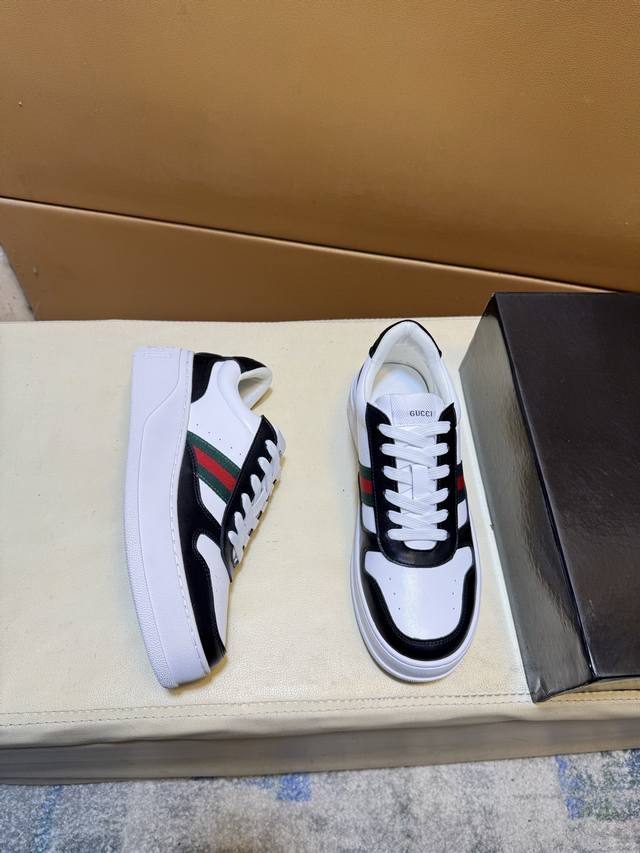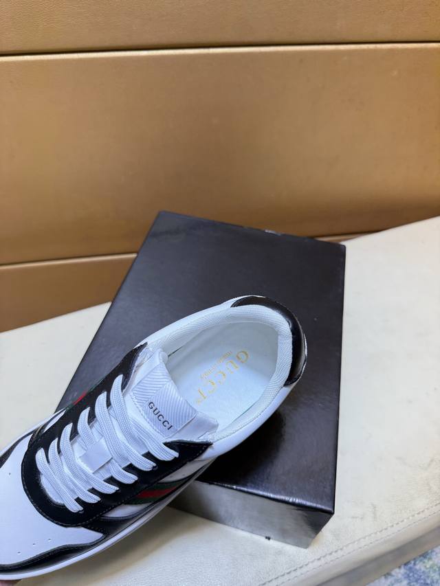 Gucci original quality. Unique modern style sneakers. A must-have casual shoe for trendy men. Italian imported original brand, imported original leather, sheepskin lining to prevent fading and rubbing. Sole: original factory supply original sole, French lazy style design, fits snugly to the foot, original quality, super comfortable original sole. Just like the real product photos, even better in person. High-quality sneakers, men's shoes, sizes: 38-44.