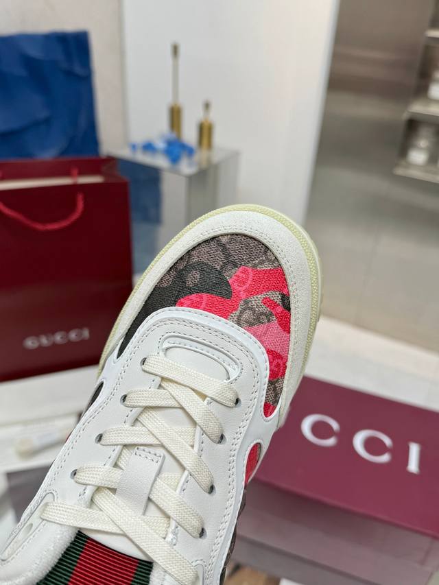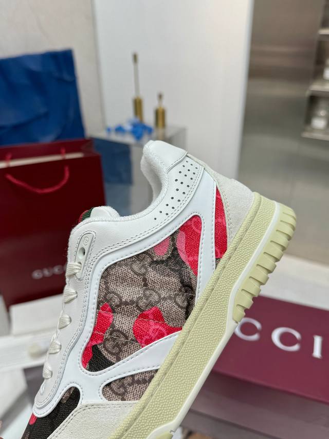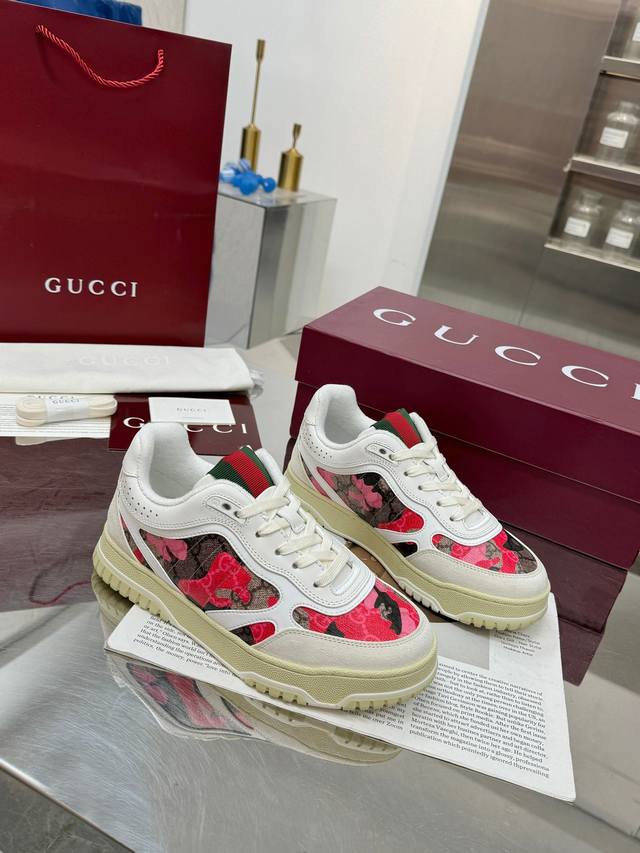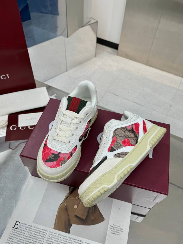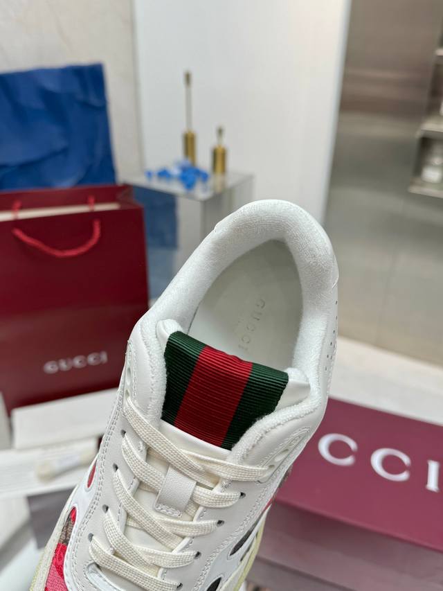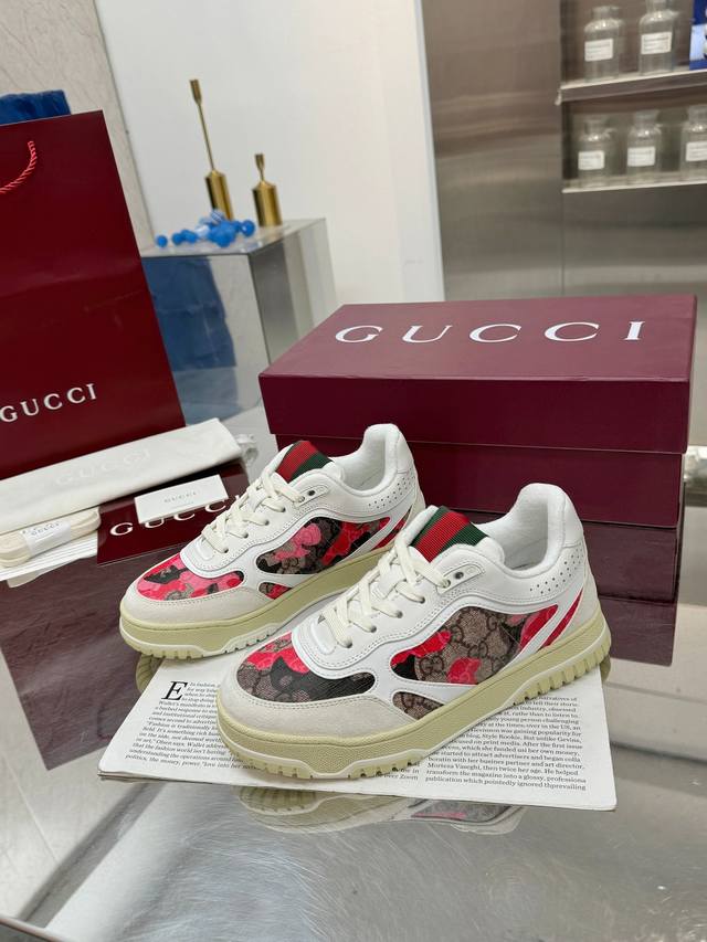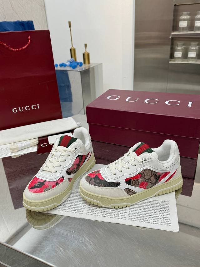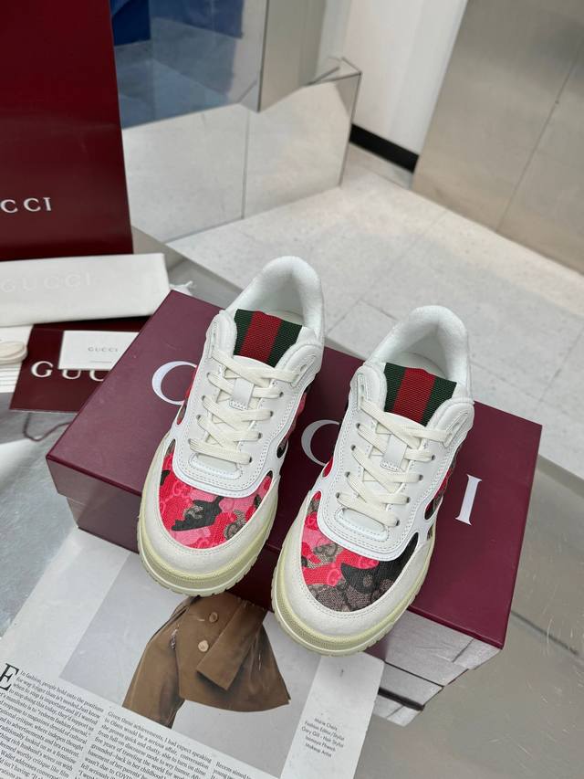 Gucci's latest hot-selling high- and low-top distressed couple sneakers are now available. These high- and low-top sneakers feature a basketball-inspired silhouette, cleverly incorporating perforated panels and a distressed effect, showcasing unique craftsmanship. The design incorporates interlocking double-G accessories and Gucci branding details, subtly paying homage to the brand's design heritage. Material: Original custom-made imported top-grain cowhide. Lining: Sweat-absorbing and odor-resistant towel lining. Sole: Original molded TPU sole. Sole thickness: 3cm. Size: 36-40 (Women's 41). Custom-made.