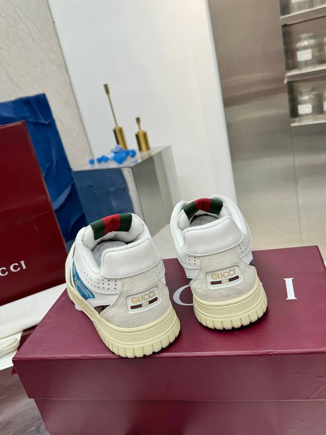 Gucci's latest hot-selling high- and low-top distressed couple sneakers are now available. These high- and low-top sneakers feature a basketball-inspired silhouette, cleverly incorporating perforated panels and a distressed effect, showcasing unique craftsmanship. The design incorporates interlocking double-G accessories and Gucci branding details, subtly paying homage to the brand's design heritage. Material: Original custom-made imported top-grain cowhide. Lining: Sweat-absorbing and odor-resistant towel lining. Sole: Original molded TPU sole. Sole thickness: 3cm. Size: Men's 39-46, Men's 38, 46. Custom-made.